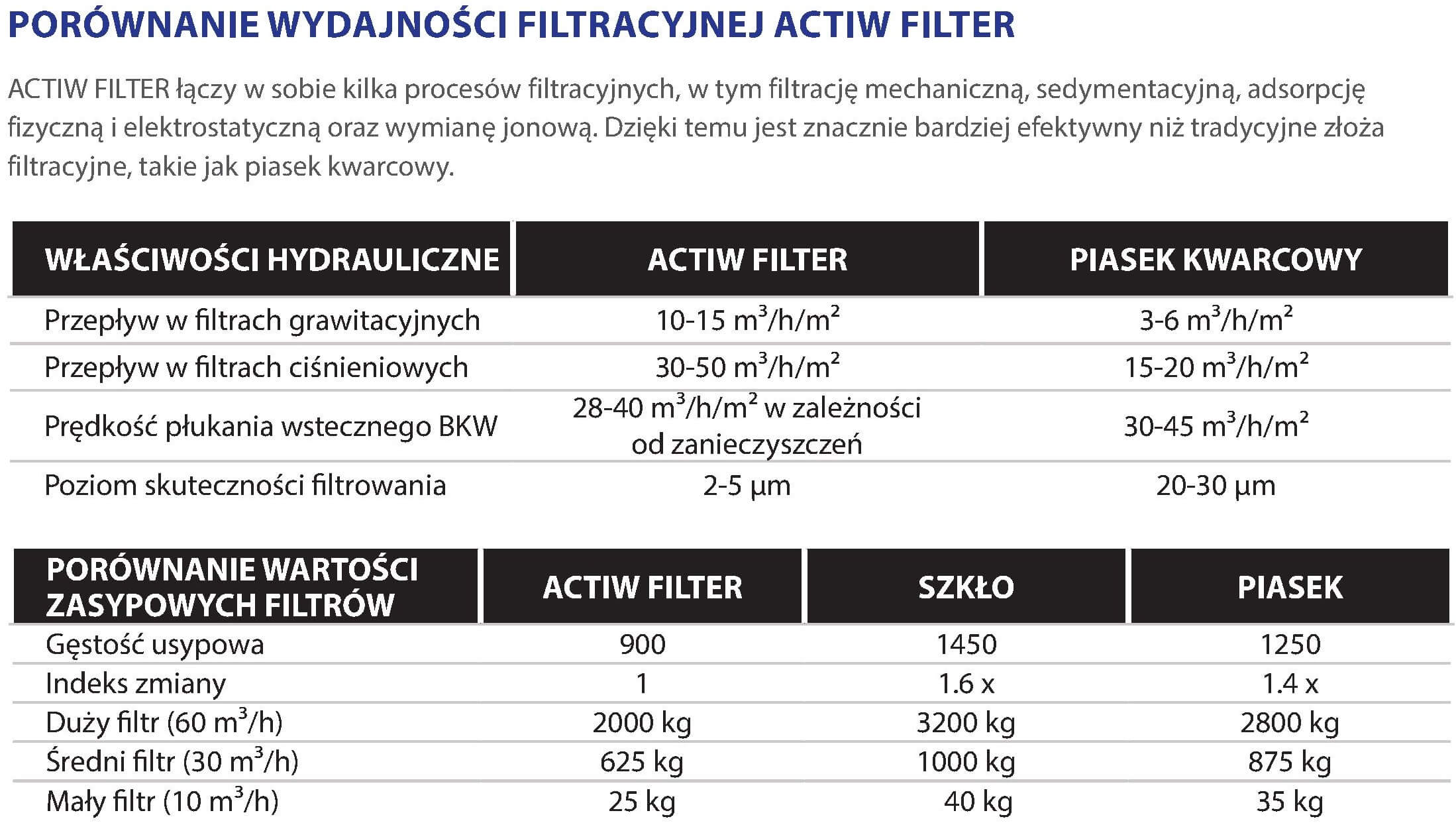 WŁAŚCIWOŚCI ZŁOŻA FILTRA ACTIW: