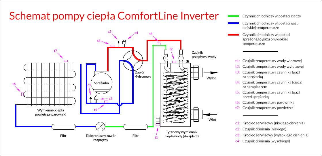 - Model InverterPlus - obecny na rynku od wielu lat, jest już sprawdzonym, dojrzałym technologicznie urządzeniem, oferuje grzanie i schładzanie wody, gwarancja 5 lat
