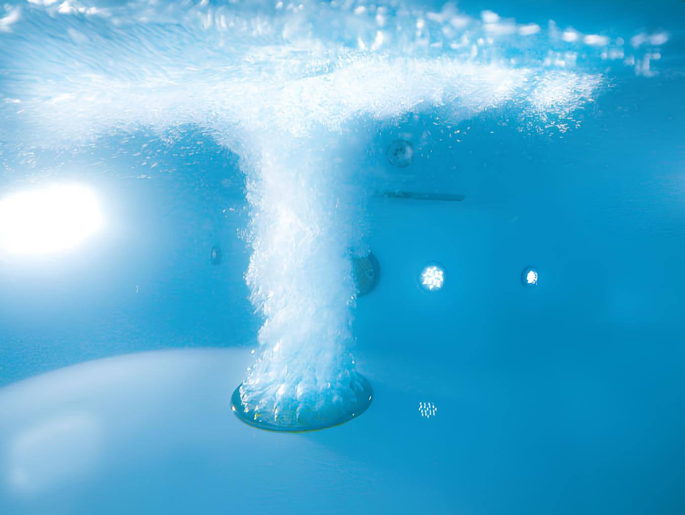 Zestaw do masażu powietrzem montowany w dnie basenu. Niezwykle przyjemna dla ciała atrakcja basenowa - podwodny gejzer basenowy.
