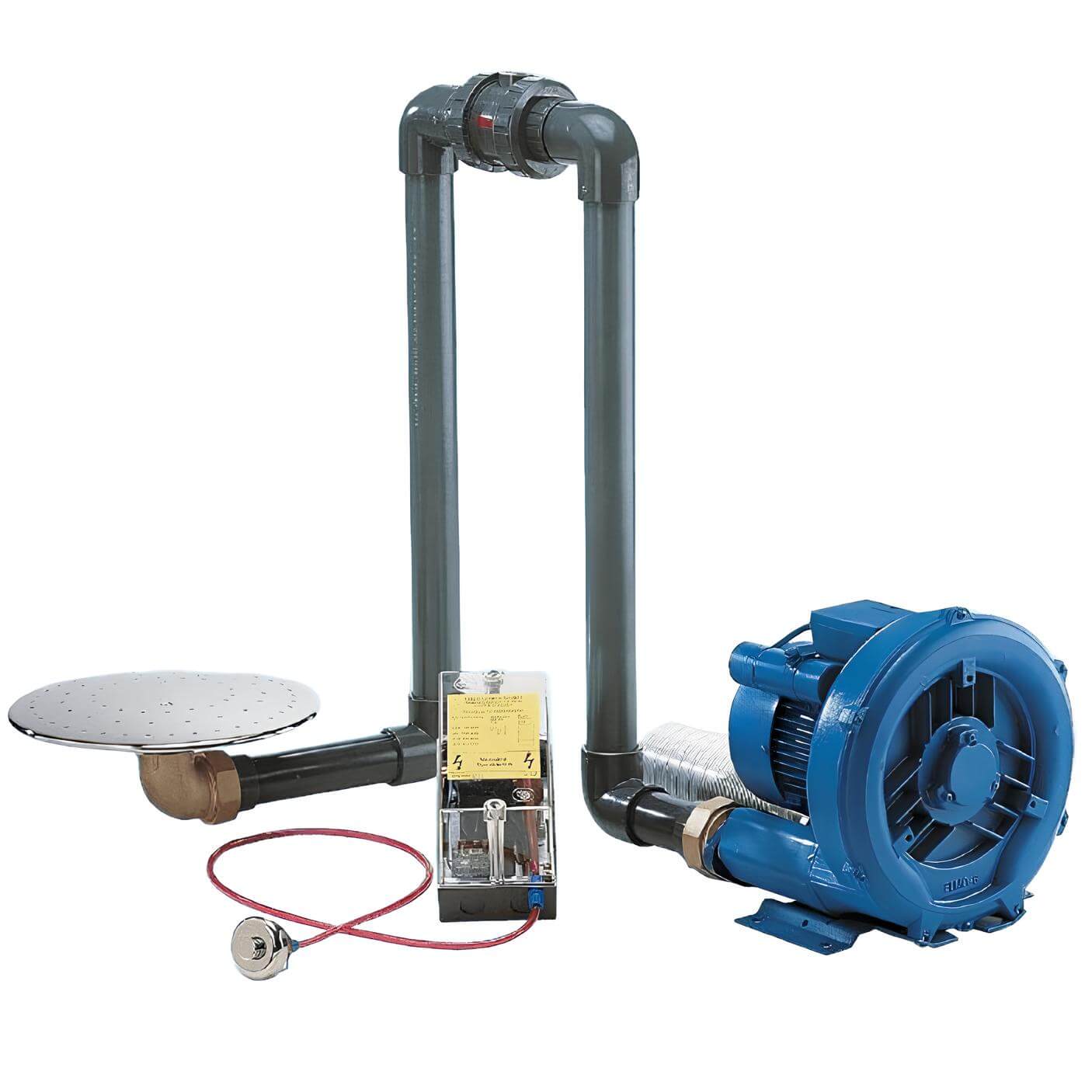 Zestaw składa się z kompletnego masażu wraz ze skrzynką sterującą, pompy 1,3 kW 135 m3/h, zaworu zwrotnego, pokrywy wielootworowej (inne mocowania dla basenu foliowego a inne dla płytkowego), i włącznika pneumatycznego. Zasilanie 230V, przyłącza 2".