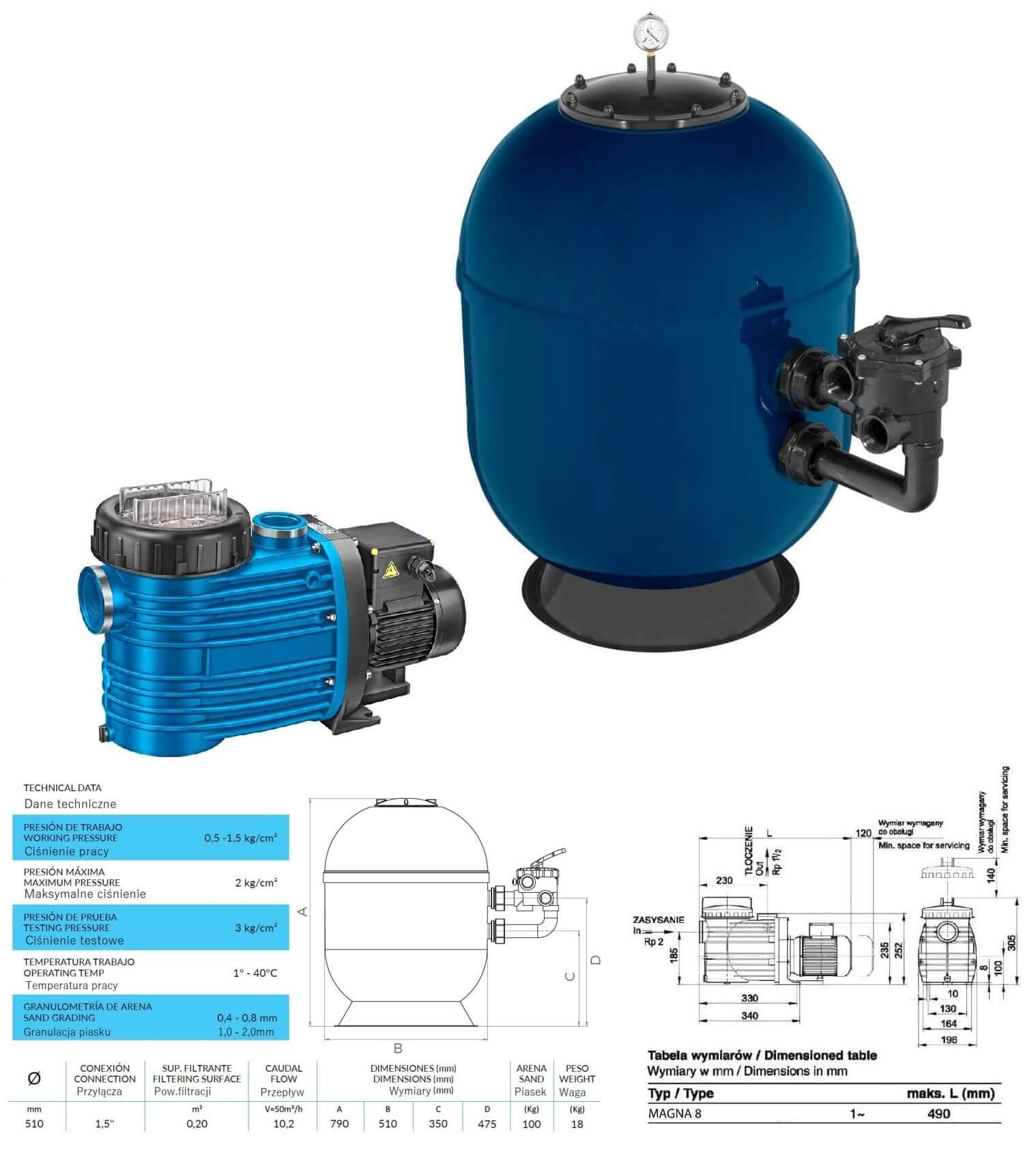 Porządne, sprawdzone przez nas na prywatnych basenach zestawy filtracyjne, dobrych europejskich fabryk, m.in. Speck Badu Pumpen, Dryden, Fairland, Pahlen, Maytronics, VGE, Bayrol, Tebas. Każdy element wysyłamy z drukowaną instrukcją montażu. Produkty w dostawie mogą wizualnie nieznacznie różnić się od zdjęć. Wymiary i tabelki techniczne na zdjęciach po wyborze wariantu.