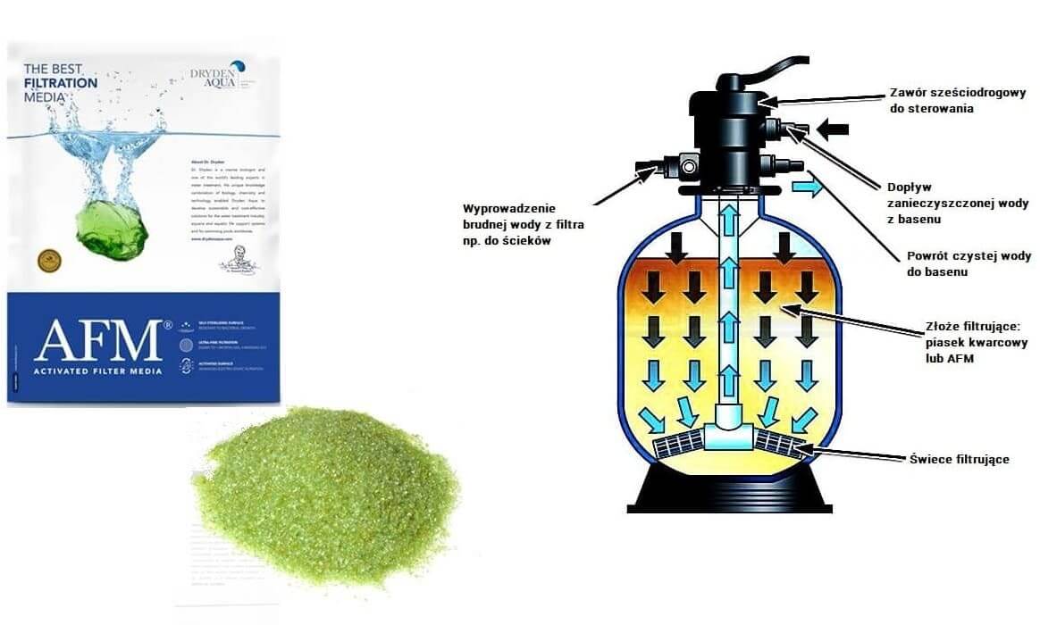 Dla entuzjastów nowych technologii polecamy aktywne szkło filtracyjne (AFM). Choć jest droższe od piasku, ma znacznie dłuższą żywotność (nawet do 4-5 lat!) i w teorii lepiej wyłapuje drobne zanieczyszczenia oraz bakterie. Dzięki temu zużyjesz do 25% mniej chemii basenowej, a płukanie filtra będzie rzadsze i skuteczniejsze. Ale teoria teorią, a życie wskazuje że na corocznie wymienianym (higiena osobista!) piasku, da się uzyskać takie same efekty.