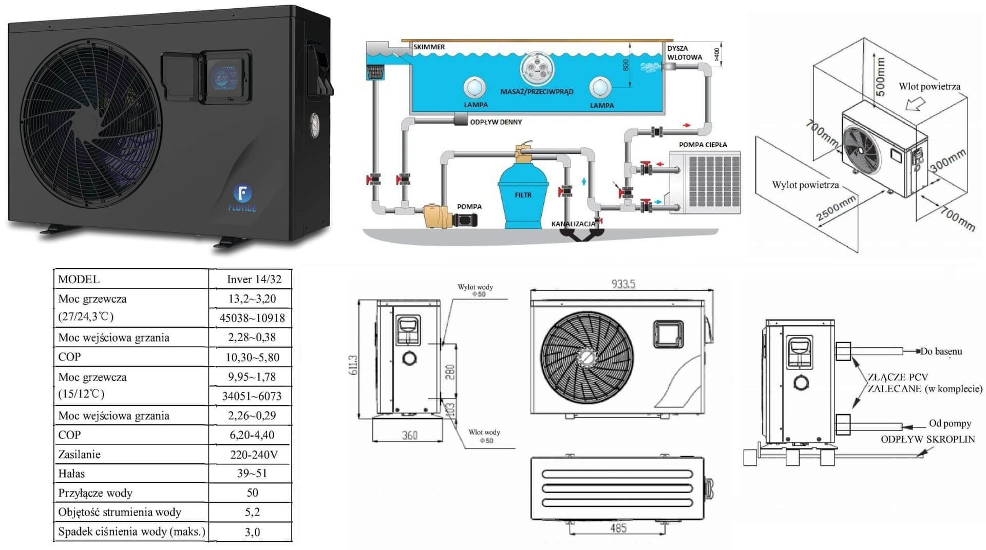 Wskazówki montażowe do filtracji, automatycznego dozowania chemii, podgrzewania i dodatkowych akcesoriów.