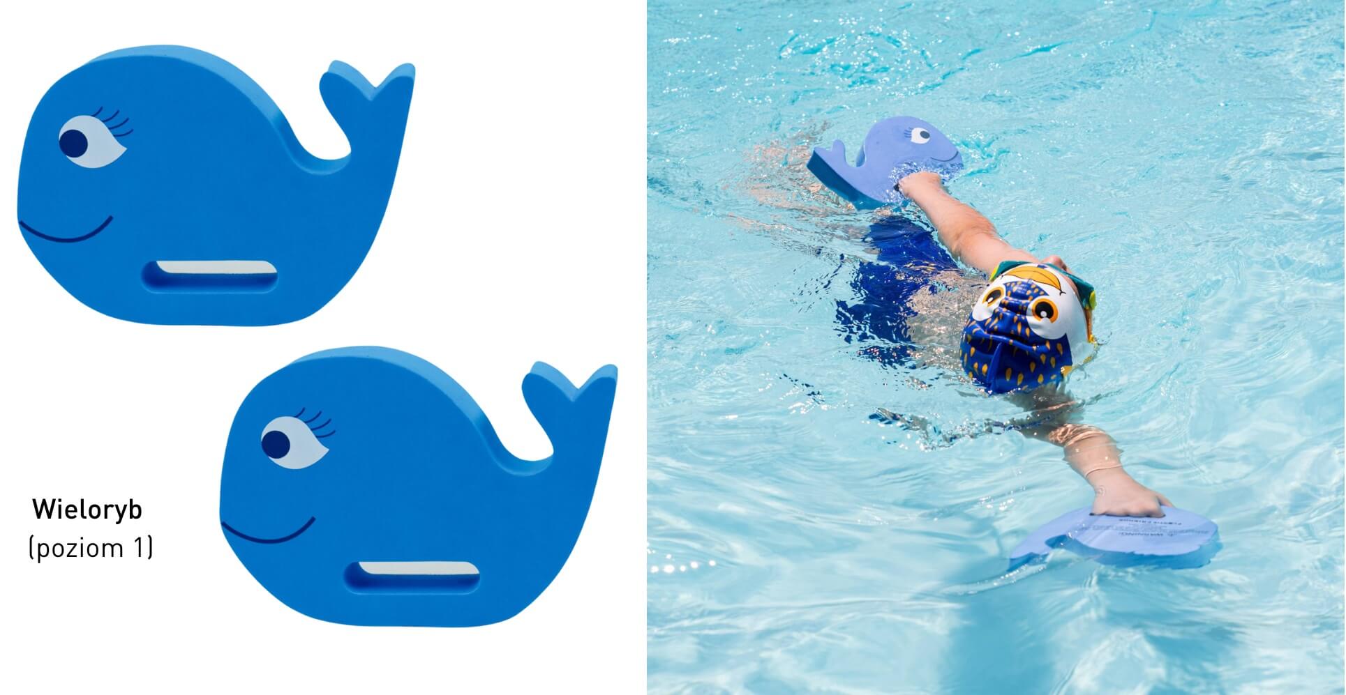 - WIELORYB - POZIOM 1 Grubość 38 mm; odpowiedni dla początkujących pływaków, którzy potrafią samodzielnie zanurzyć się i potrzebują wsparcia w wodzie.