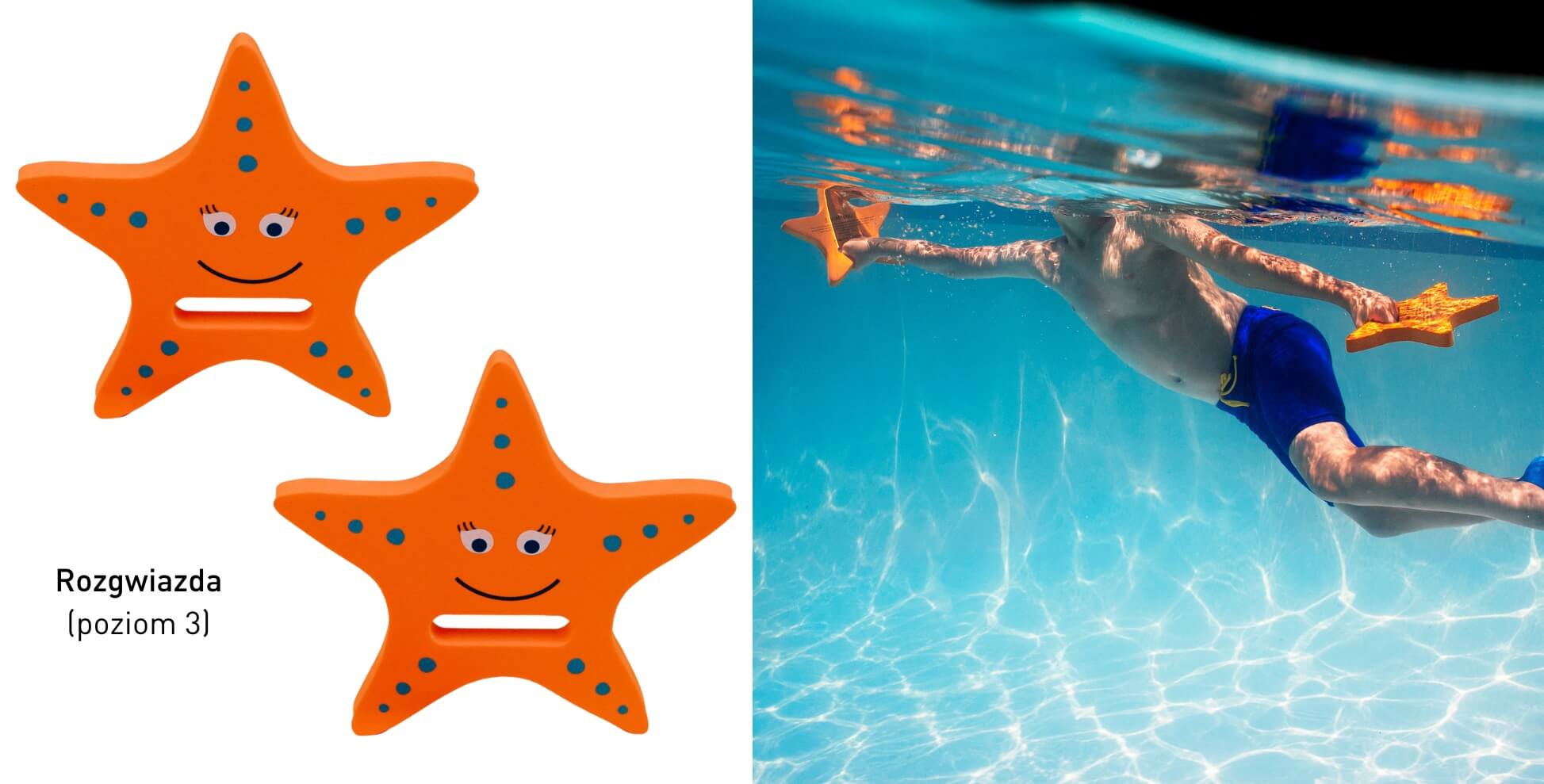 - ROZGWIAZDA - POZIOM 3 Grubość 20 mm; odpowiedni dla pływaków, którzy potrafią płynąć z twarzą zanurzoną w wodzie oraz unosić głowę, aby nabrać powietrza i ćwiczyć rytmiczne oddychanie.