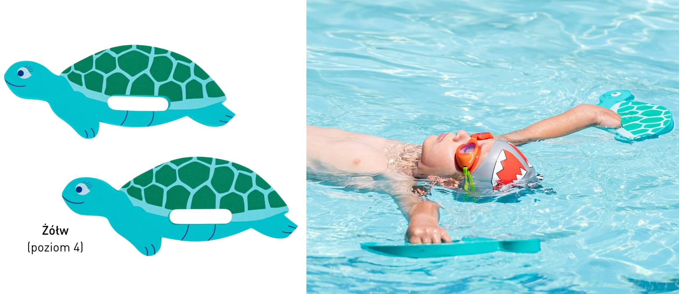 - WSPARCIE W NAUCE TECHNIKI: Ułatwiają kontrolę oddechu, utrzymanie prawidłowej pozycji ciała i zachęcają do wkładania twarzy do wody.