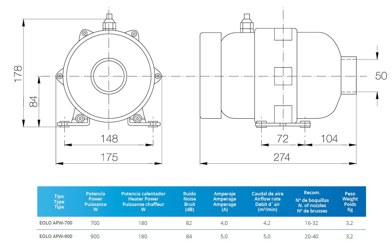 Dmuchawa basenowa - Pompa powietrza EOLO - 2 turbiny