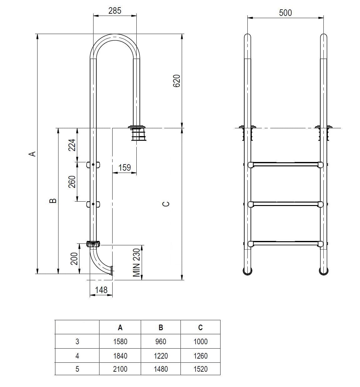OGÓLNY SCHEMAT POGLĄDOWY KAŻDEJ DRABINKI BASENOWEJ: