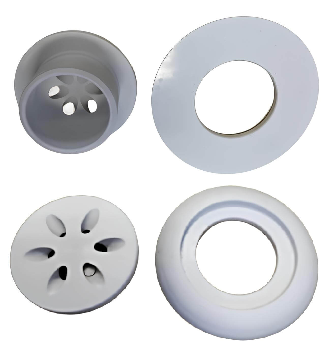 Dysza Basenowa Ssąca Do Masaży i Atrakcji wyróżnia się solidnością i trwałością. Dysza basenowa ssąca do masaży i innych atrakcji basenowych, kolor biały, do basenów foliowanych i ceramicznych. Opcjonalnie może być wyposażona w maskownicę ze stali nierdzewnej. Produkt charakteryzuje się odpornością na chlor i promieniowanie UV.