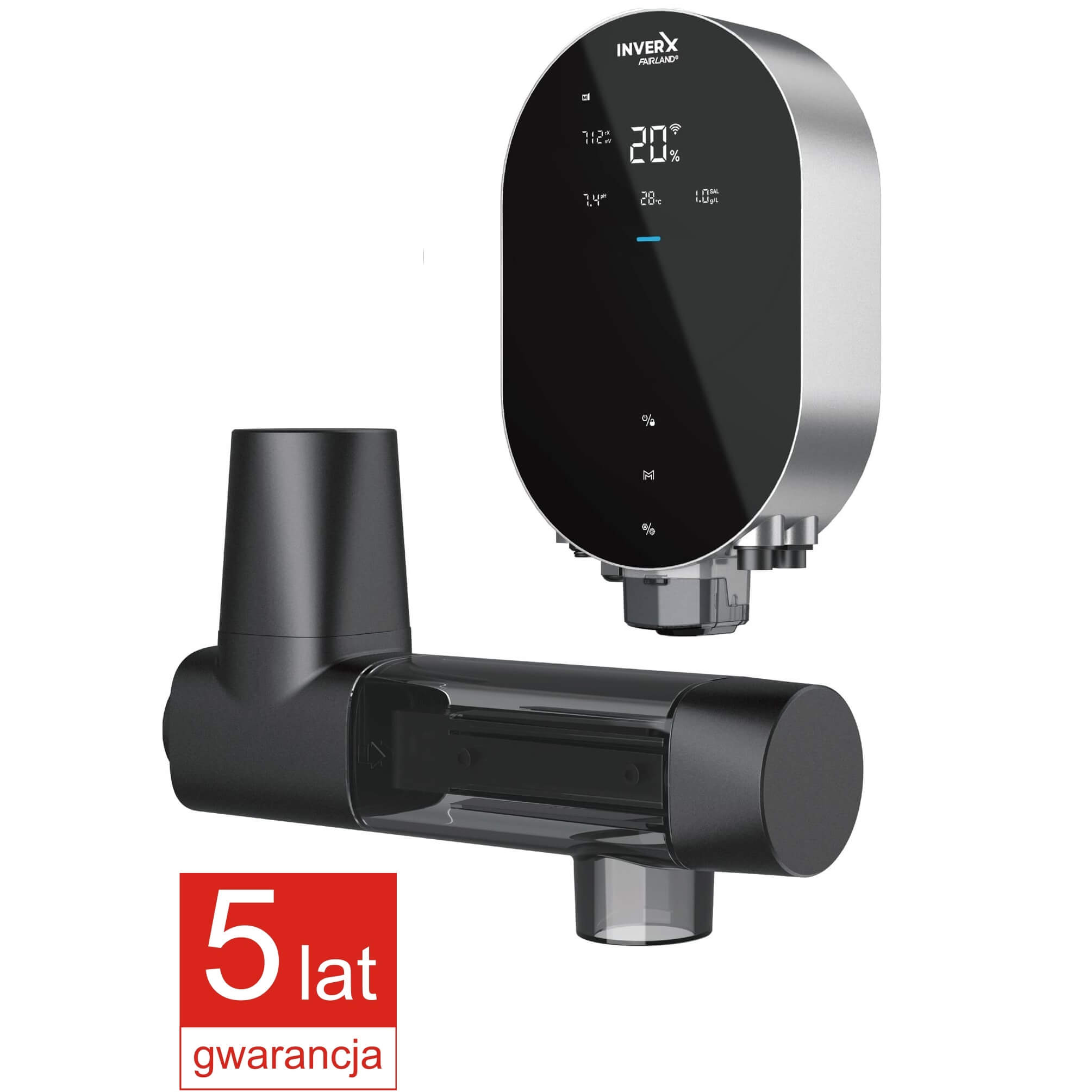 Elektrolizer INVERPURE PRO MLS23 (23,0 g/h) do basenów o objętości od 30 do 70 m3. Odczyt Redoks/pH/Temperatura. Tryb TURBO (do 120%). InverGo App. Gwarancja: 5 lat