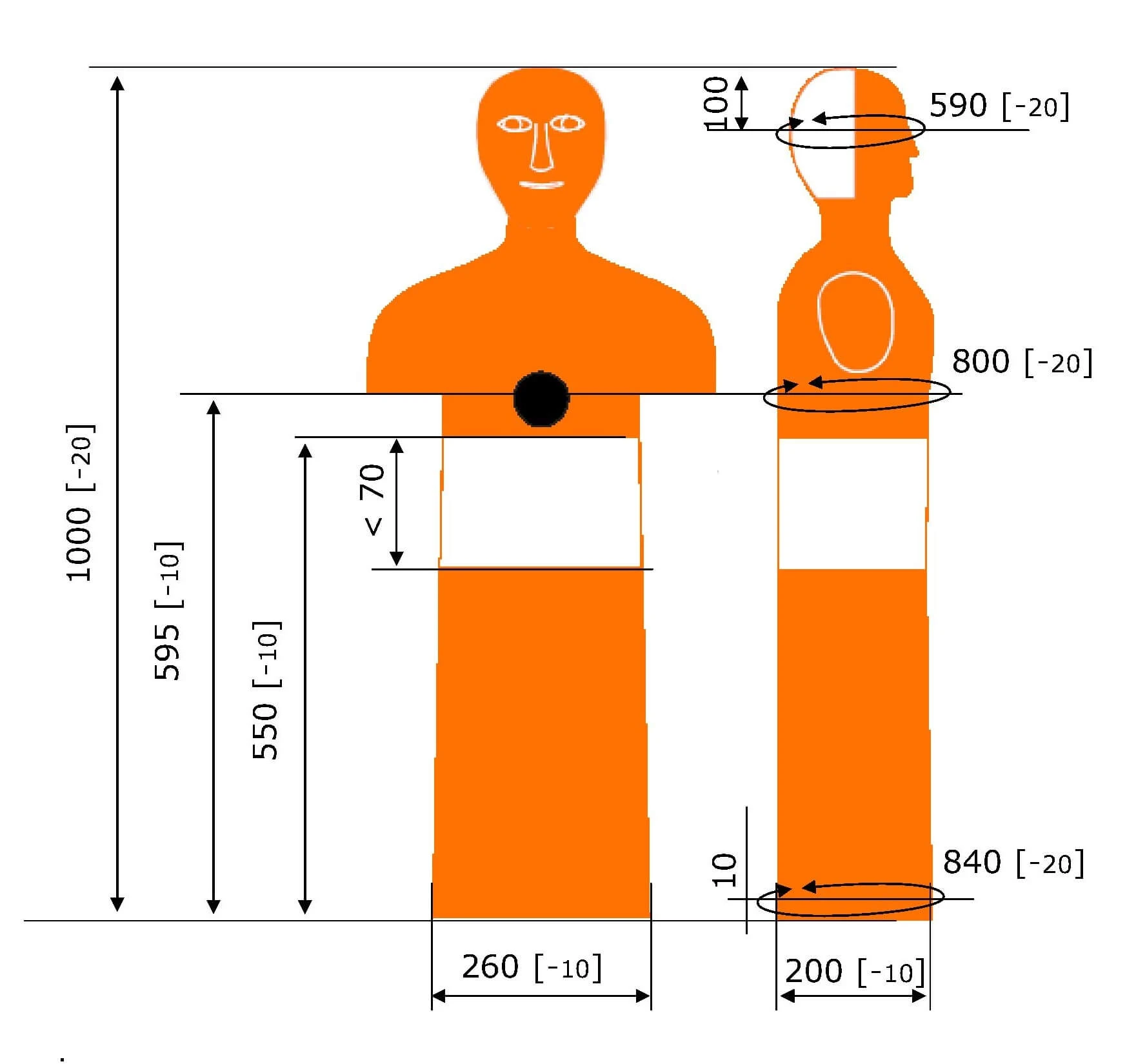 a) linia przejściowa (pas poprzeczny) wokół manekina o szerokości min. 70 mm