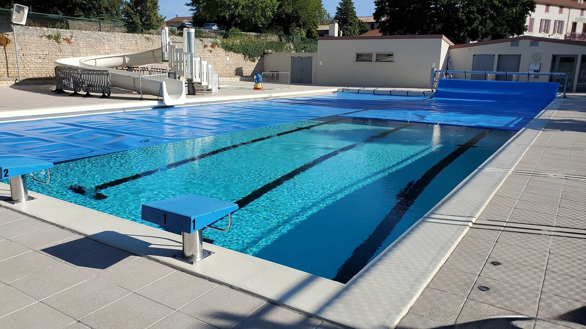 Zawsze zalecamy zamawiać przykrycie co najmniej o 1 metr dłuższe niż długość lustra wody - umożliwia to wygodniejsze nawijanie i rozwijanie folii ze zwijacza, zabezpiecza pokrywę solarną przez wyrwaniem z mocowań, oraz estetycznie wygląda w pełnym rozwinięciu.
