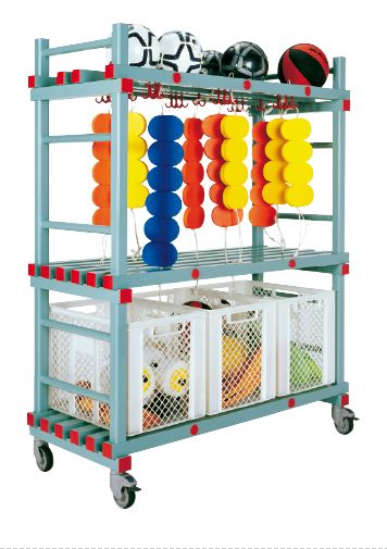 Kosze basenowe na wyposażenie sportowe o wysokości 32 cm (jednopiętrowe) wykonane są ze specjalnego tworzywa, dzięki któremu wózek odporny jest na chemię basenową i warunki panujące na hali pływalni. Można wykonać z niego wózek.