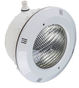 Kompletna lampa basenowa wykonana z wysokiej jakości plastiku, odpornego na działanie agresywnej wody słodkiej oraz słonej.