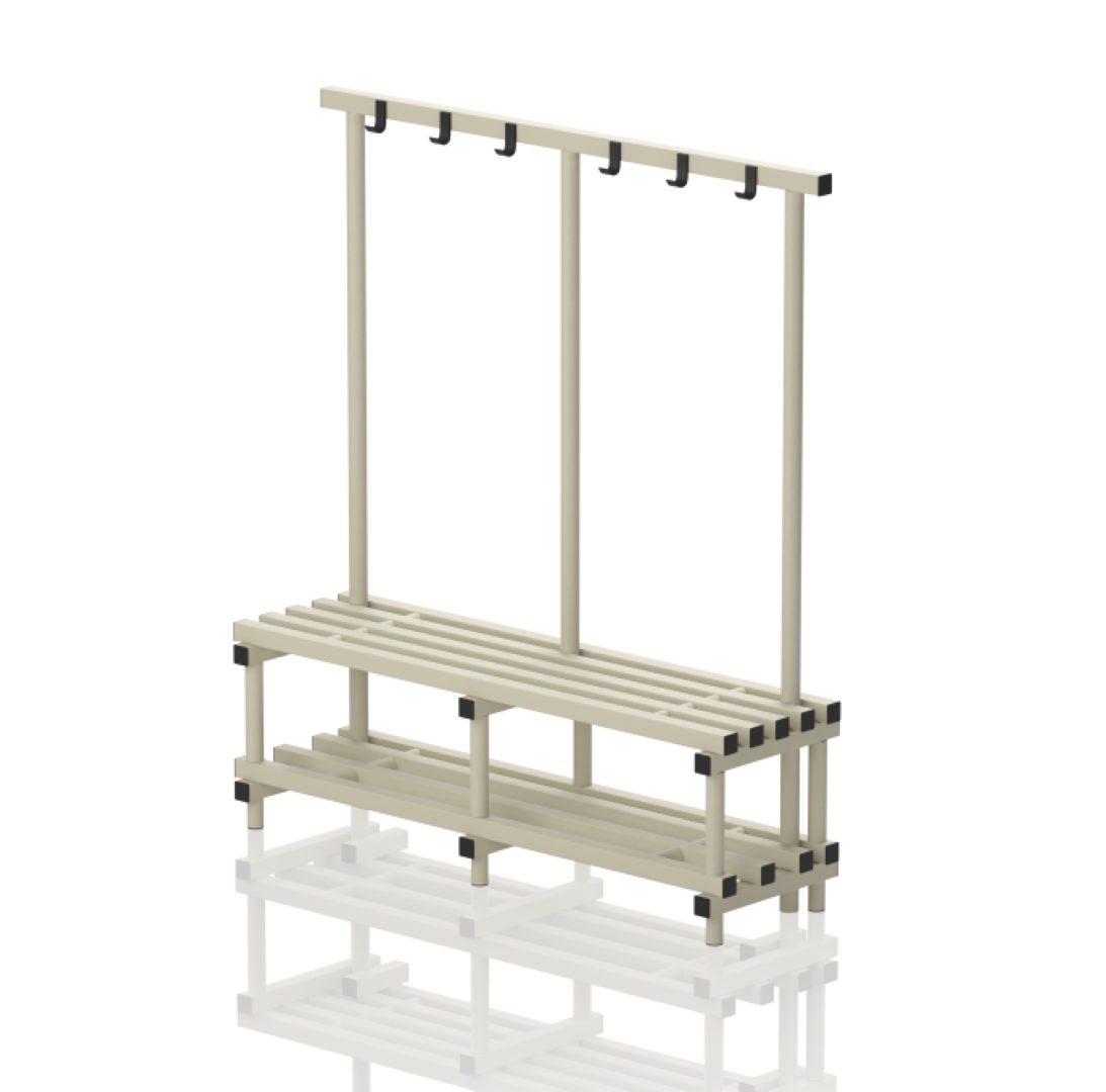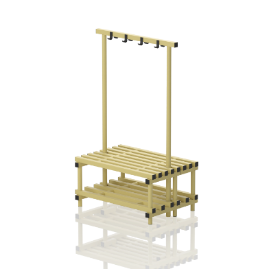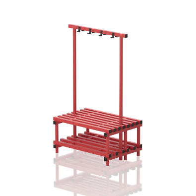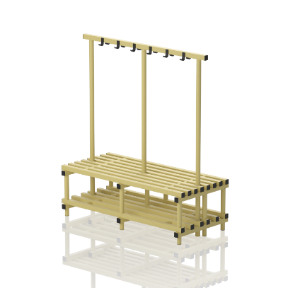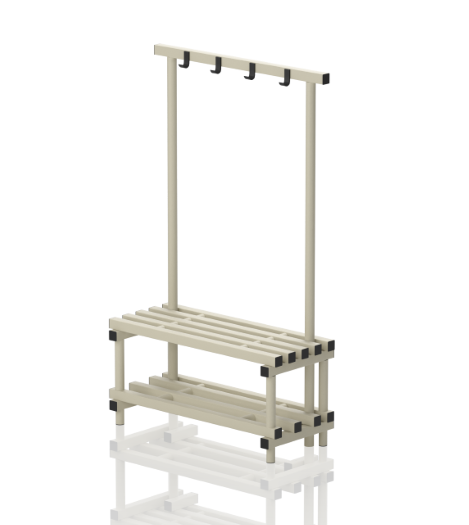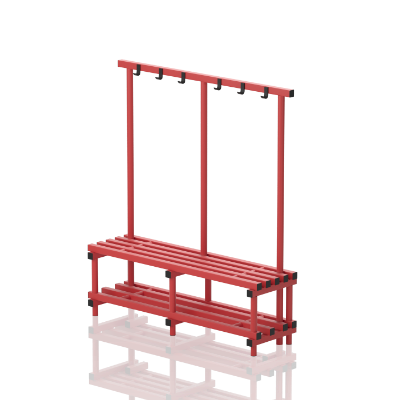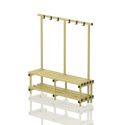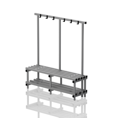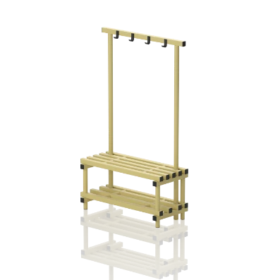 Ławki basenowe z tworzywa sztucznego z dolną półką i wieszakiem - jednostronne i dwustronne. Ławki dostępne są też w wersji JUNIOR, z wieszakiem obniżonym z 170 cm do 140 cm - idealne dla szatni w przedszkolu i szkole podstawowej.