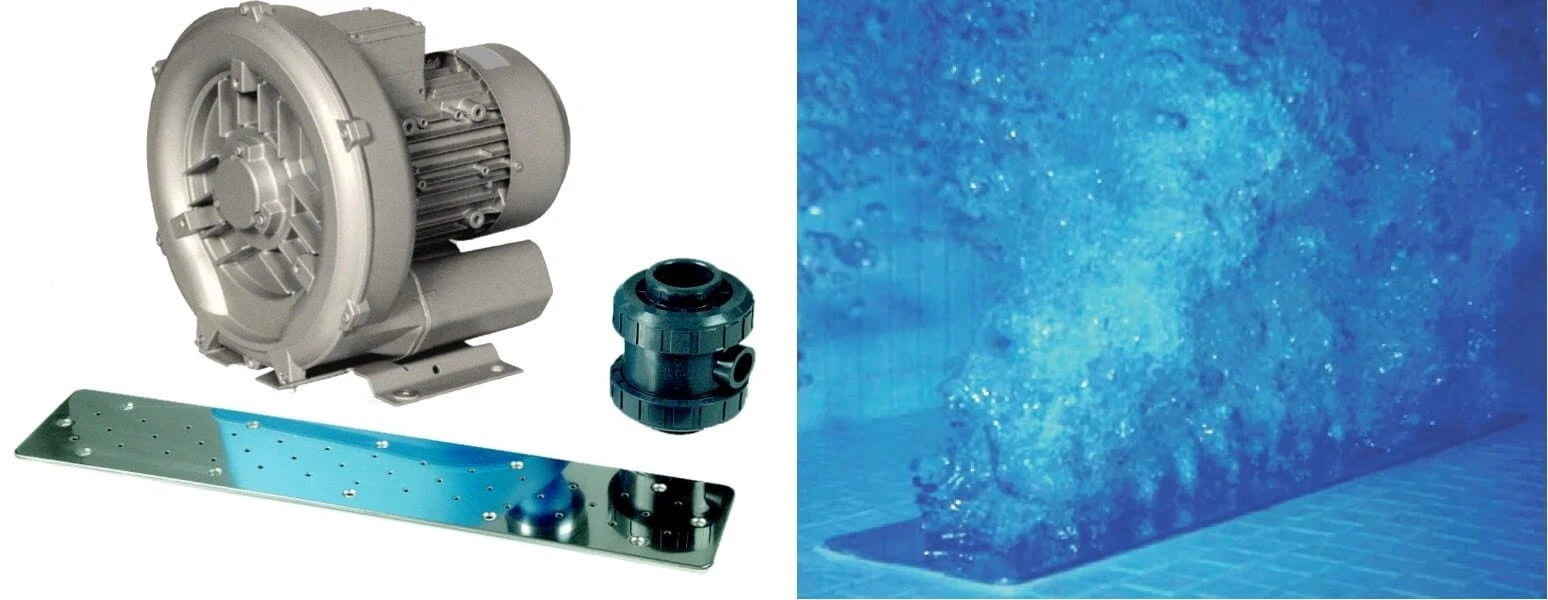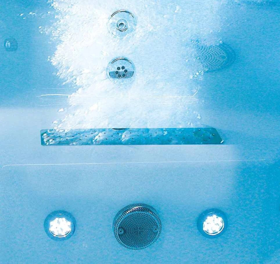 Uruchamiane z basenu daje wspaniały efekt masażu i kąpieli z pęcherzykami powietrza. Uaktywniony system powietrza daje uczucie lekkości i odprężenia. Pokrywa wykonana z polerowanej stali najwyższej jakości A4, stanowi dodatkowe upiększenie basenu.