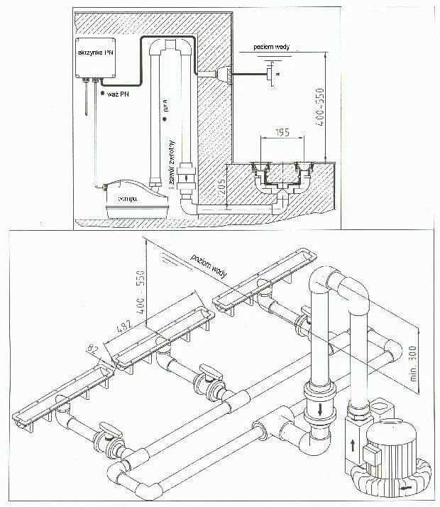 Specjalna konstrukcja pompy tłokowej pozwala uzyskiwać odpowiednią wydajność przy niewielkiej mocy. Należy pamiętać o wykonaniu przy montażu pętli powietrznej min. 30 cm nad lustrem wody. Głębokość montażu wynosi 40-55 cm poniżej poziomu wody. Pompa w zestawie nadaje się do intensywnego użytkowania np. w basenie publicznym. Komplet tworzą: zestaw montażowy i końcowy.