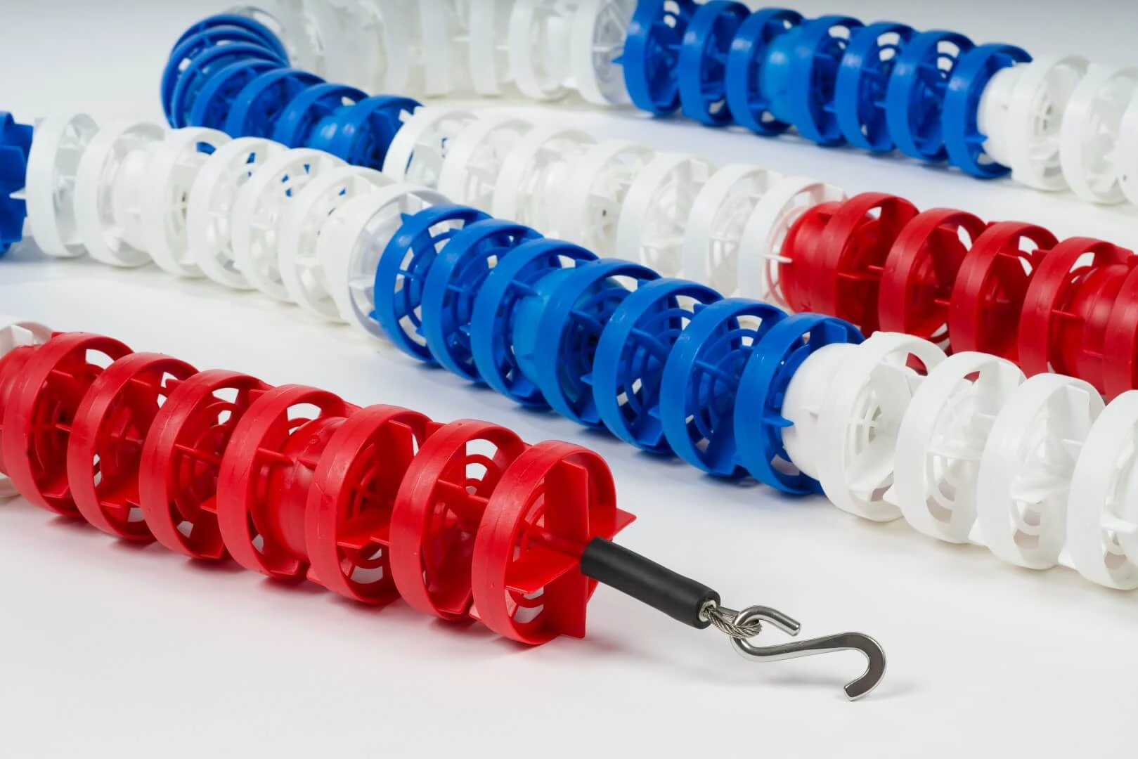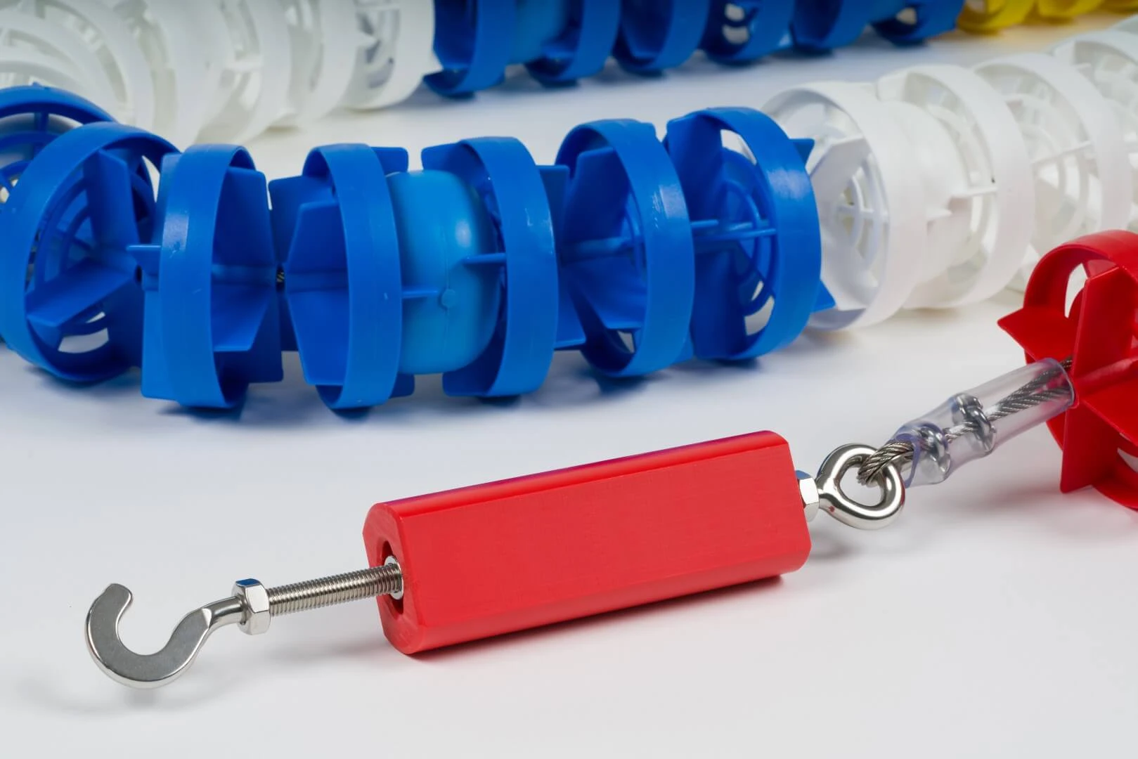 - Na lince stalowej (AISI 316) o średnicy 4 mm i przekroju 7/7 - Z naciągiem (śruba rzymska) oraz zaczepami do haków - Elementy stalowe wykonane ze stali nierdzewnej AISI 316 - Z ażurowymi krążkami 4”/100 mm z polipropylenu, odpornymi na wodę basenową i na pękanie |