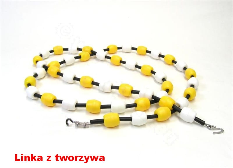 Model Extreme od uznanego producenta EPSAN. Ilość pływaków (70x65mm) na 1 metr: 8, linka z betylenu. Transparentne (przeźroczyste) przerywniki między krążkami. Przy zakupie tej liny na metry, konieczne jest dokupienie zestawu zakończeń który zawiera: dwa karabińczyki, dwa zaciski i jeden naciąg.
