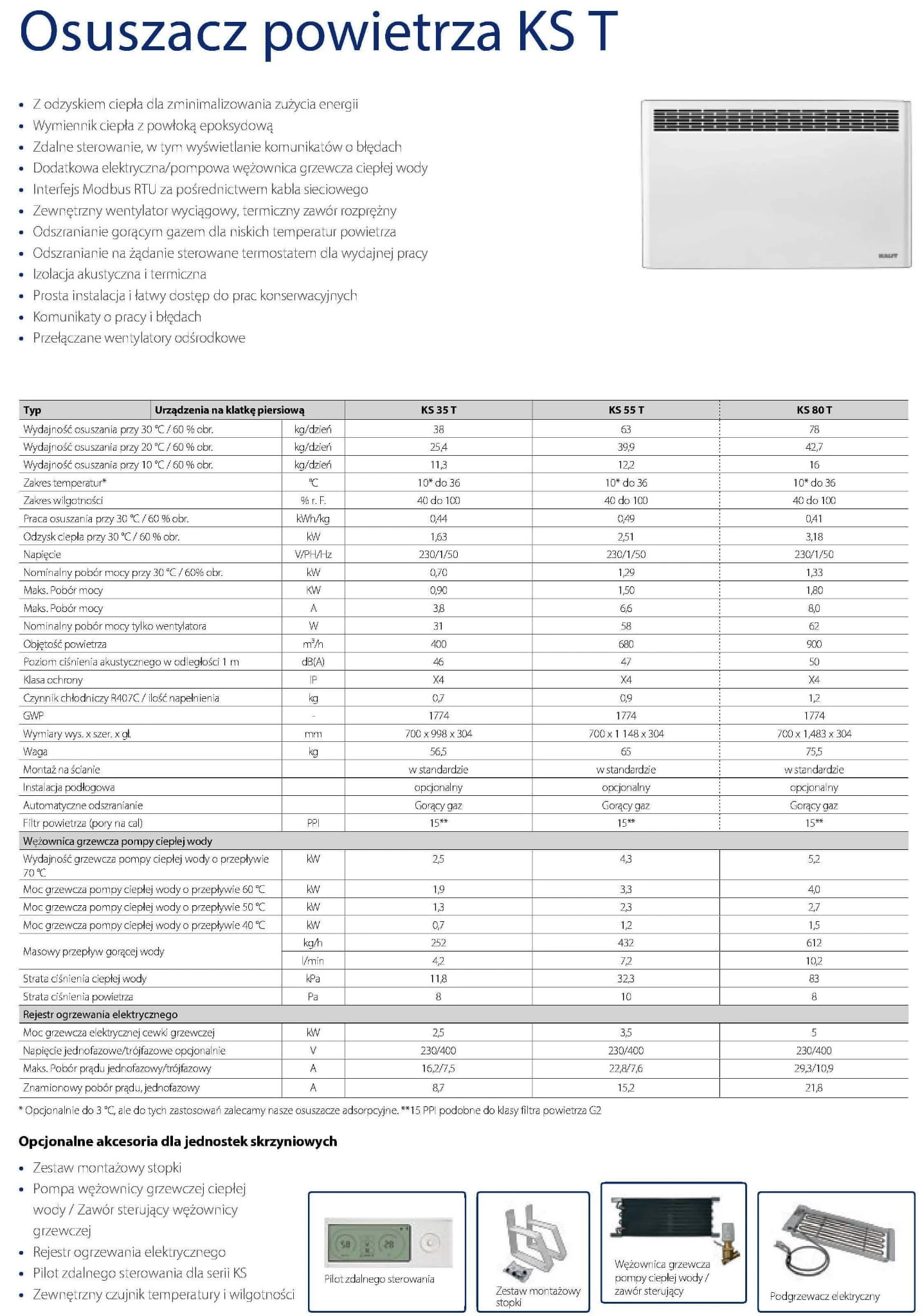- KS 35 - 80 T - Do montażu na podłodze lub na ścianie, Wydajność osuszania maks. 78,0 kg/dzień