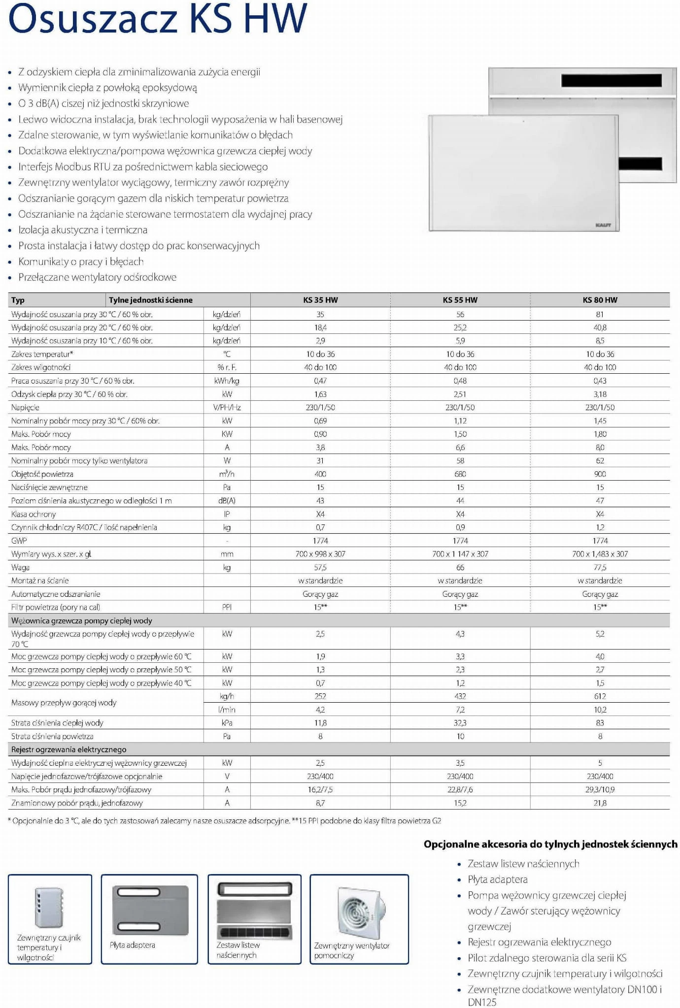 - KS 35 - 80 HW - Do montażu zaściennego, Wydajność osuszania maks. 81,0 kg/dzień