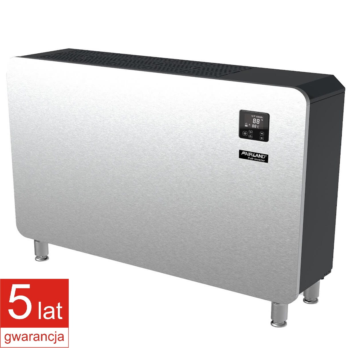 Pierwszy w pełni inwerterowy osuszacz powietrza Fairland, gwarancja 5 lat, do basenów o lustrze wody od 25 do 50m2. Wyraźnie energooszczędny, bardzo cichy. Możliwość montażu na ścianie lub na podłodze, wężyki odpływowe i nóżki w zestawie. Poza krytym basenem, osuszacz może być również stosowany w piwnicy, siłowni, muzeum lub galeriach.