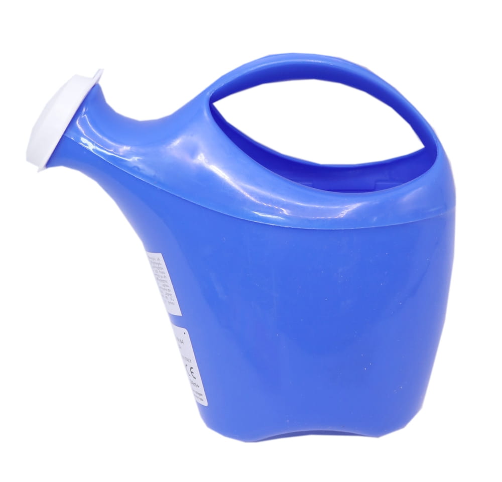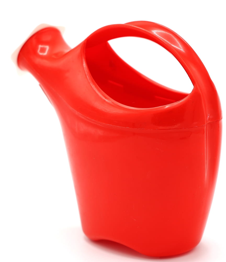 Plastikowa konewka, wykonana z wytrzymałego tworzywa sztucznego.