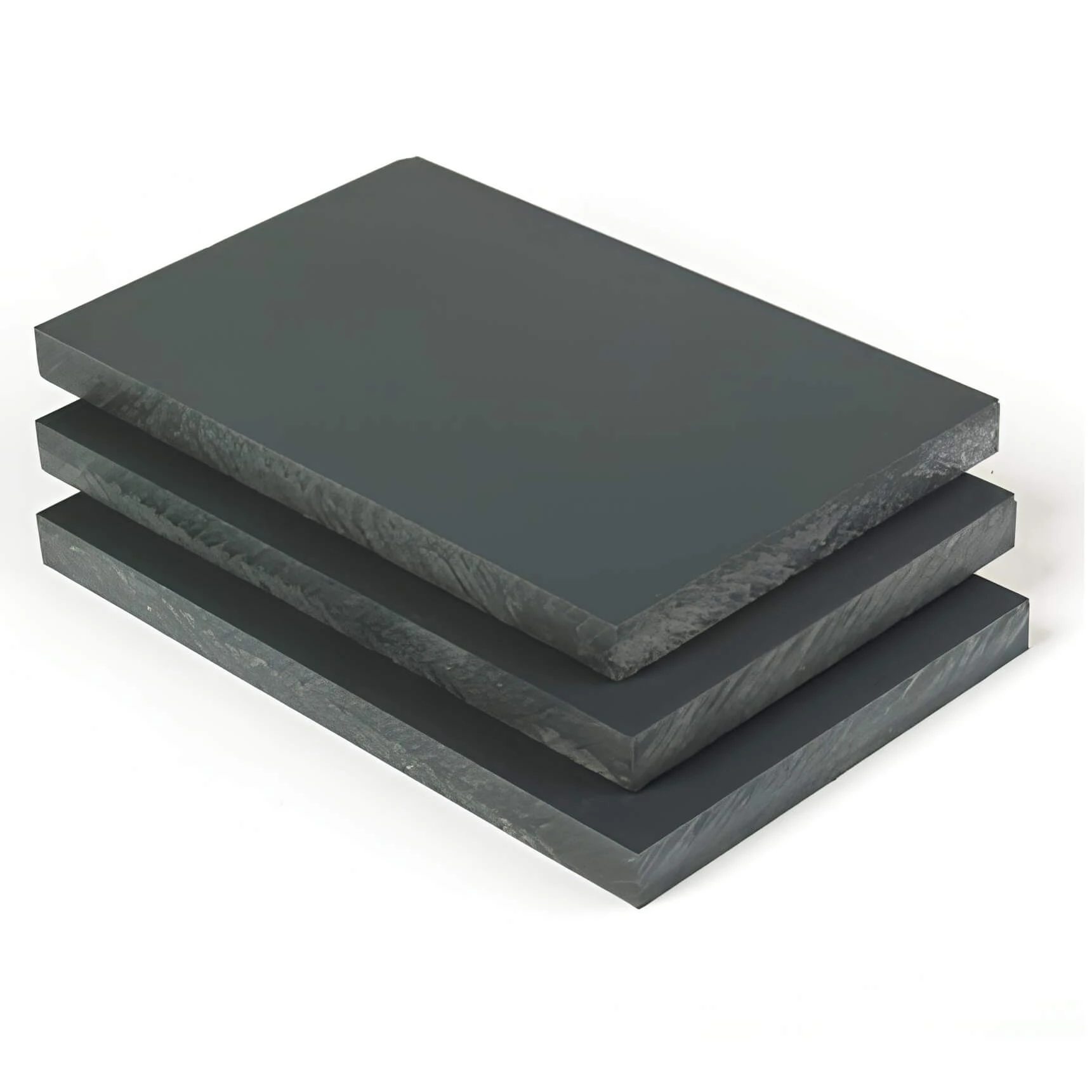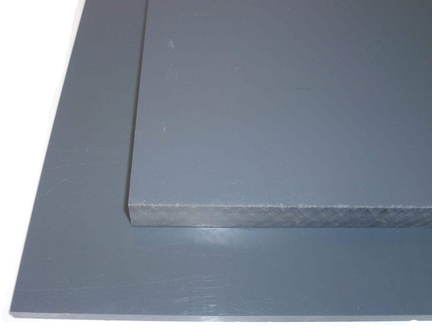 Płyty (płaskie blaty) z szarego, twardego PVC. Rozmiar jednej płyty to 1x2 m. Grubości do wyboru: 15, 20, 25 i 30 mm.
