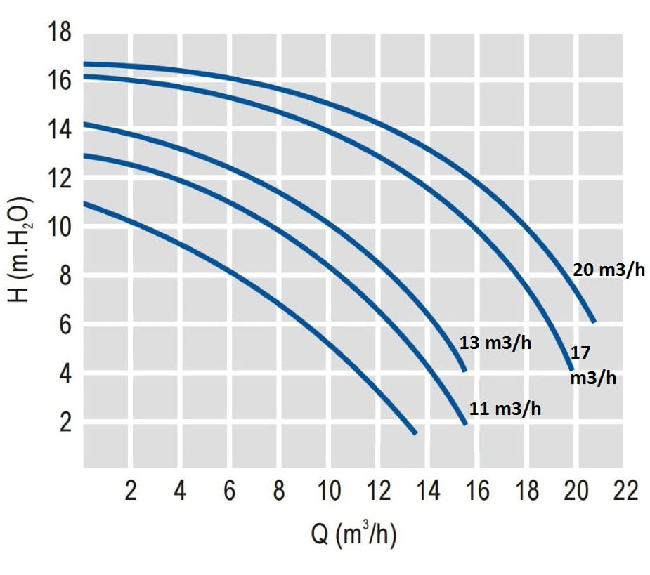 - 11 m3/h, 230 V, 0,37 kW, przy wysokości słupa wody 6m, SA050MIML000