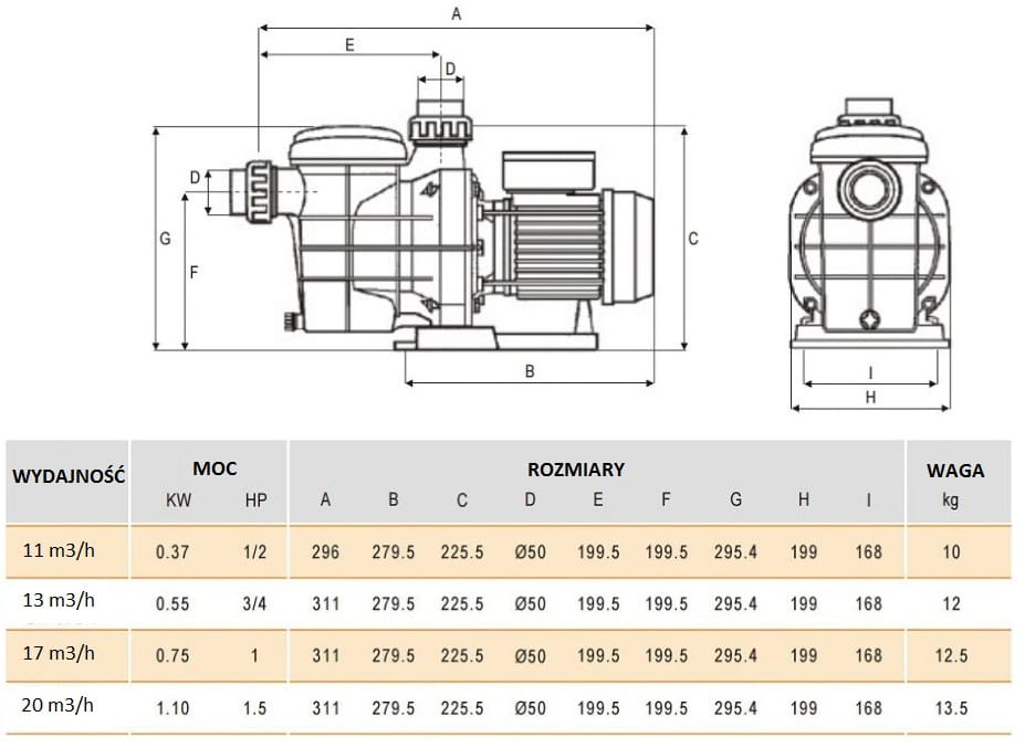 Seria pomp do basenu America jest bardzo trwała i wykonane z właściwych materiałów. Łożyska ze stali nierdzewnej, obudowa z polipropylenu PP wzmocnionego włóknem szklanym. Przeźroczysta pokrywka koszyka prefiltrującego umożliwia kontrolę zapełnienia. Łożyska SKF, wytrzymałość temperaturowa do 60 stopni, dedykowana do filtrów piaskowych o średnicach 400-650 mm. Wirnik z super twardego norylu, uszczelnienie ze spieku węglowego. Przyłącza klejone 50 mm, zasilanie 230V, szczelność IP-55. Pompa nie wymaga zalewania przed uruchomieniem, jest samozasysająca. Gwarancja 2 lata.