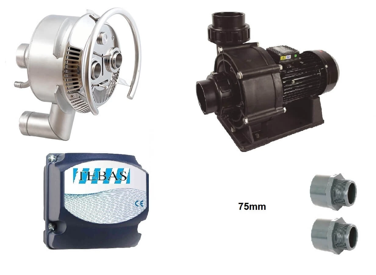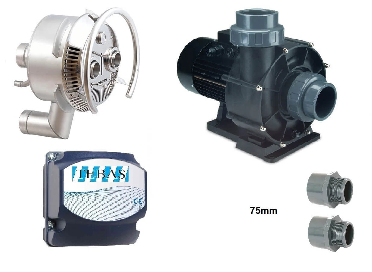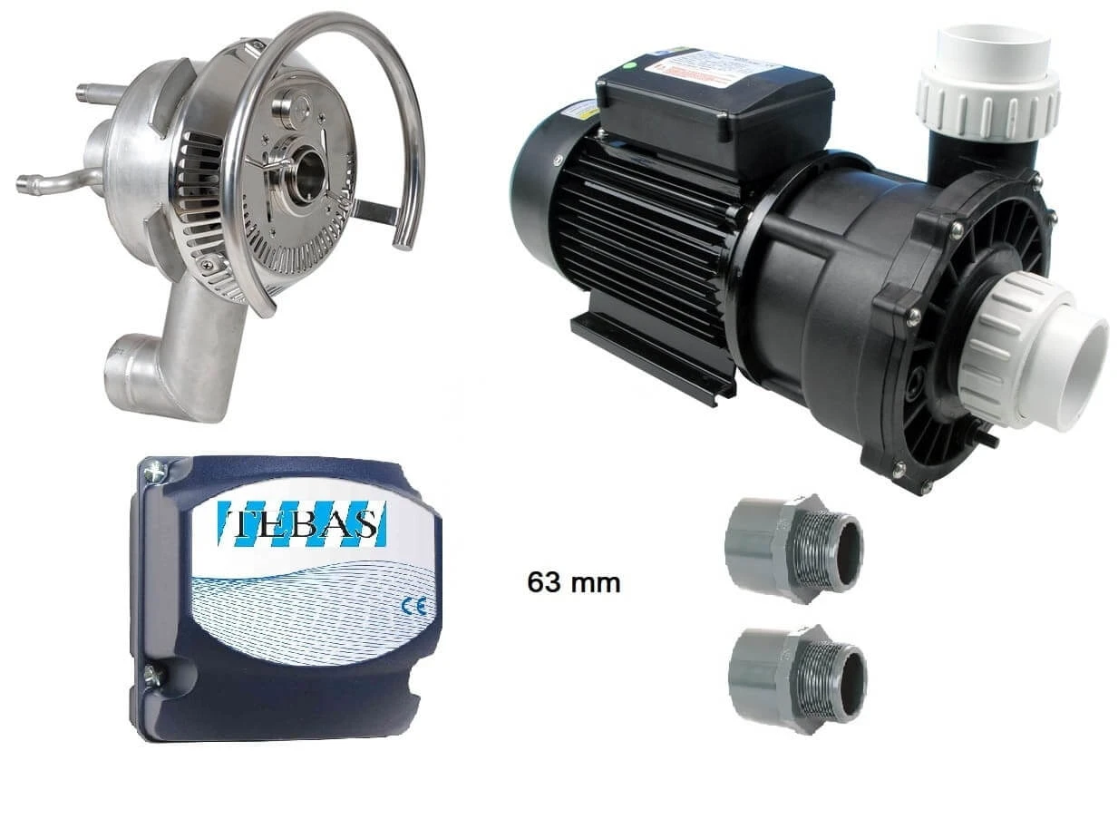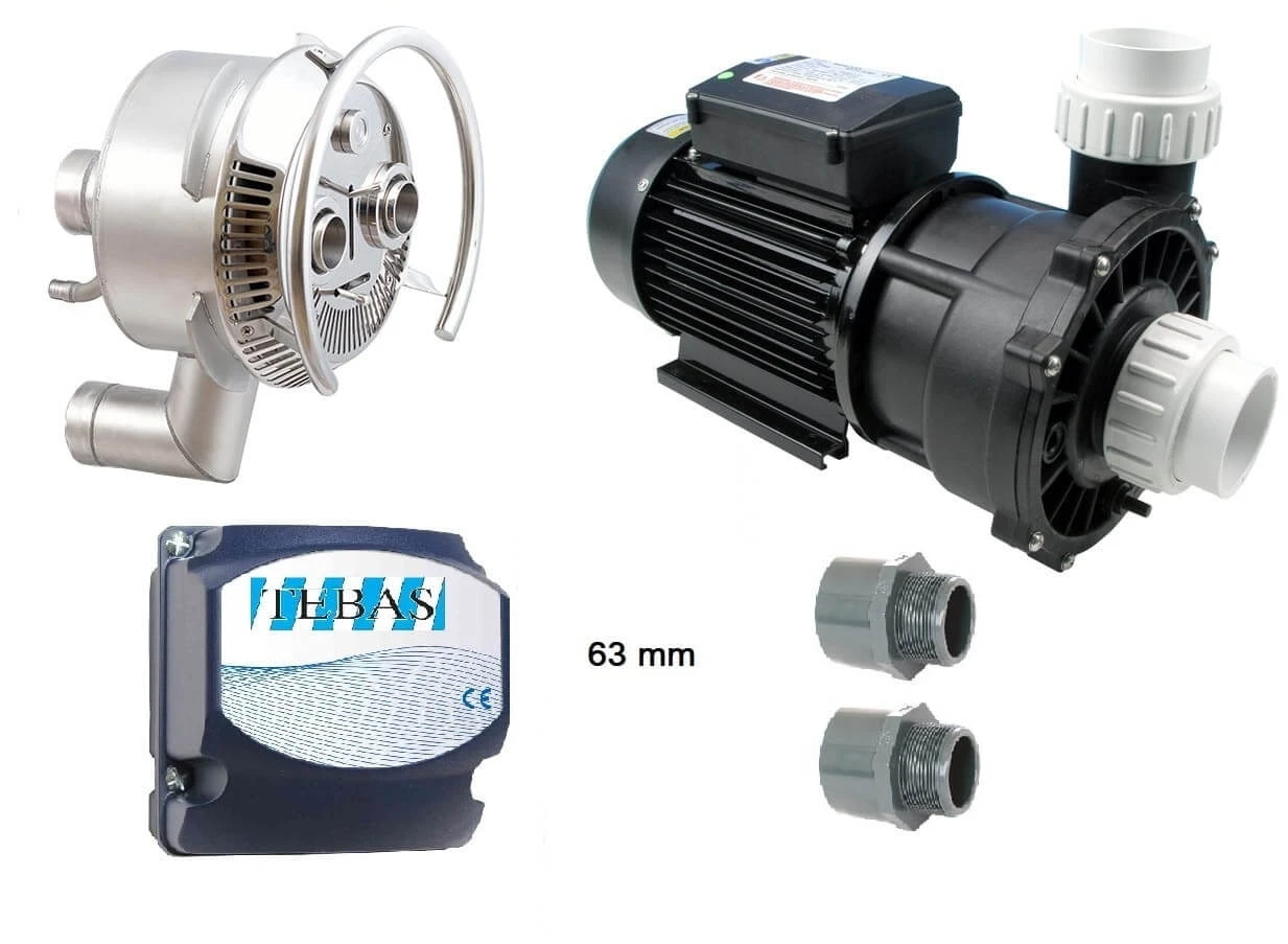 Wymagana jest wentylowana komora za ścianą basenu, oraz metalowy podest do umieszczenia pompy (łatwo taki uspawać). Rurociągi najlepiej prowadzić z minimalną ilością zmian kierunków. Regulacja siły strumienia zaworami na rurociągach może się odbywać MAKSYMALNIE w zakresie do 1/3 zamknięcia każdego z zaworów - ryzyko zapowietrzenia, zatarcia lub przeciążenia pompy. Należy wykręcić korek znajdujący się w dolnej części korpusu pompy w celu spuszczenia wody i odłączyć zasilanie. Aby uzyskać możliwość dowolnego regulowania siły strumienia, należy całkowicie otworzyć zawory, i zastosować do zasilania pompy przeciwprądu urządzenie inwerterowe.