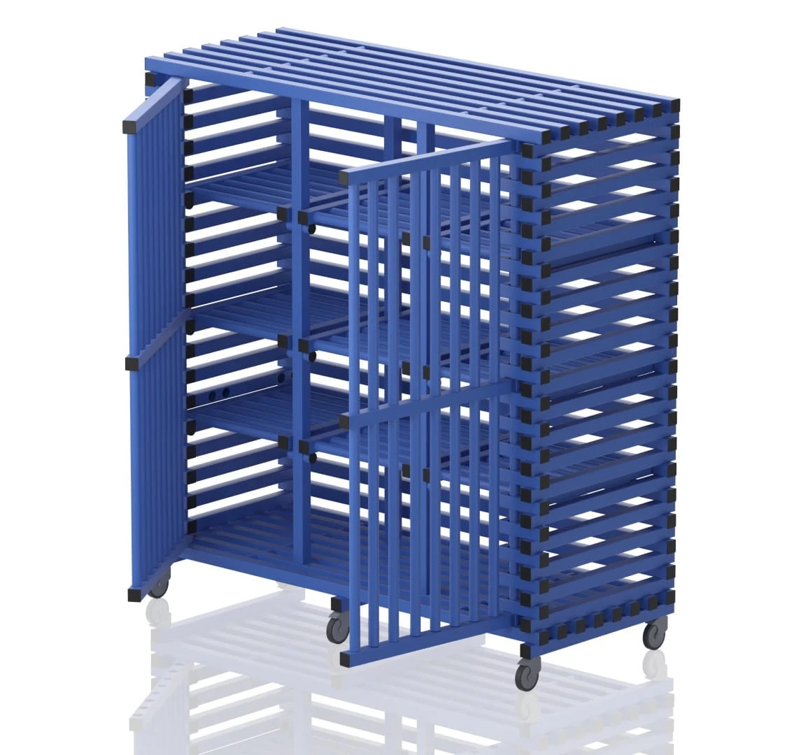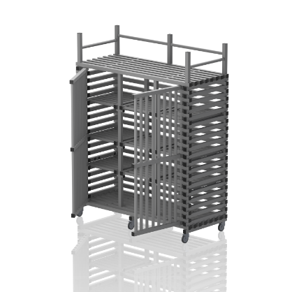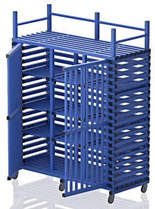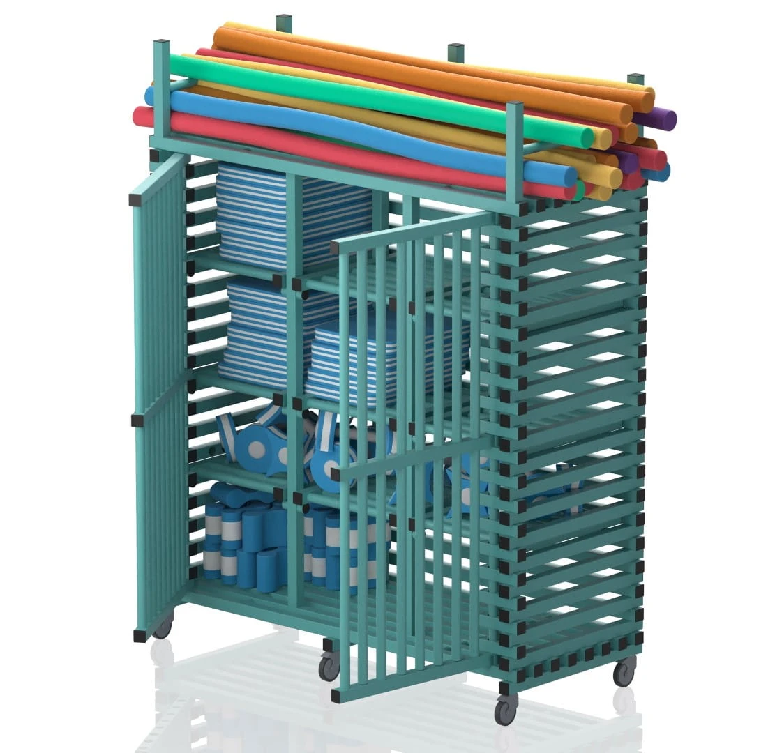 Wózek basenowy na sprzęt - duże szafy basenowe z górnym bagażnikiem lub płaskie.