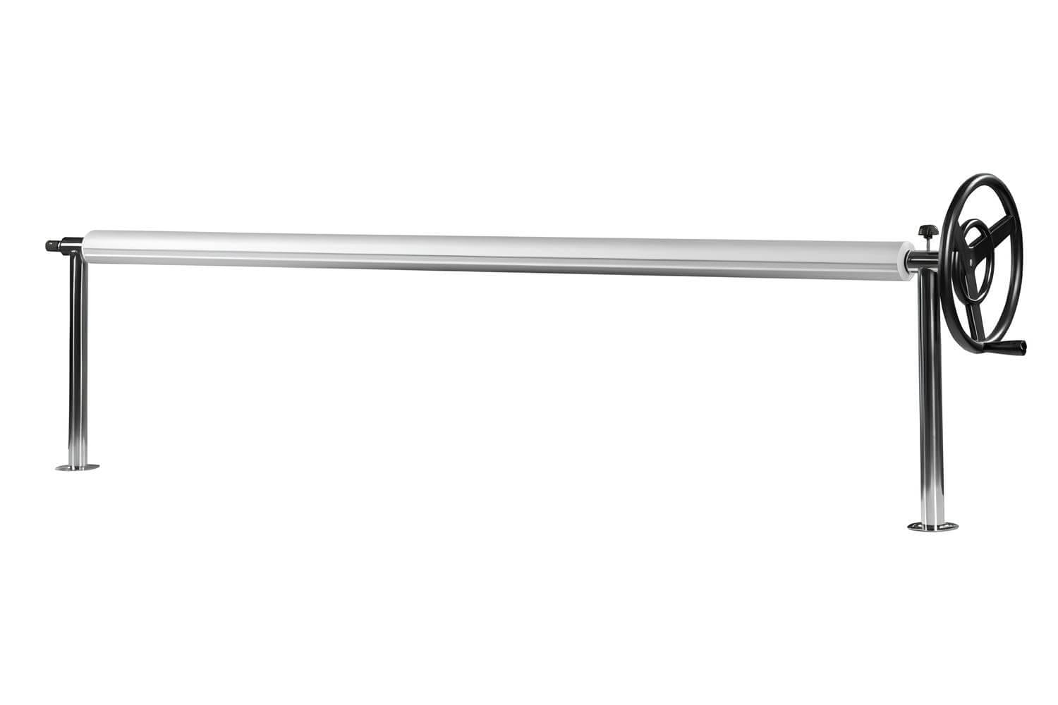 Stalowa rolka zwijająca do folii solarycznej na pojedynczym statywie, do basenów o szerokościach 5 lub 6 metrów. Aluminiowa rura zwijająca mocowana jest do folii paskami na wkrętach. Rura rolki teleskopowo rozsuwa się do max 5 lub 6 metrów szerokości. Statywy są z polerowanej stali nierdzewnej. Montowana na stałe do podłoża. Maksymalna długość nawijanej folii: 12 metrów.