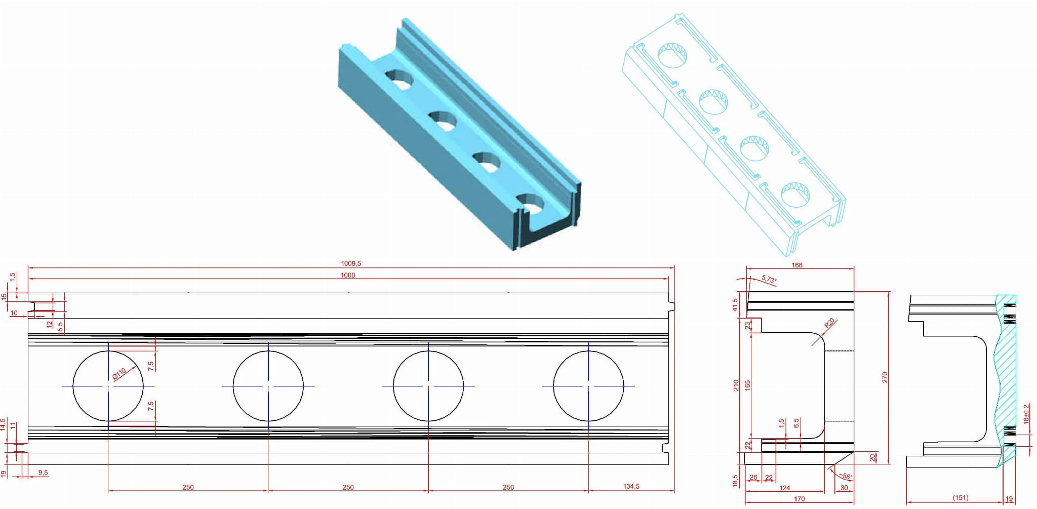 Wymiary (długość x szerokość x wysokość) mm: prosty 1009,5 x 270 x 170, narożny: 1029,5 x 279,5 x 170