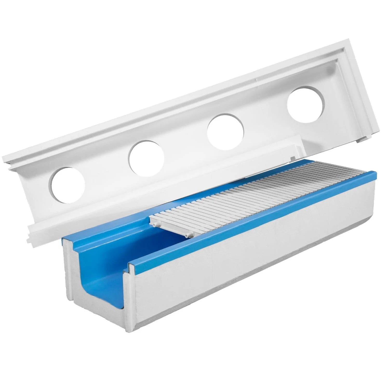 Styropianowa rynna przelewowa to gotowy komponent do budowy basenów przelewowych. Na system rynien składają się 2 elementy – rynna prosta i rynna narożna, oba komponenty posiadają solidną gęstość 100 g/l, która odpowiada za ogromną trwałość i wytrzymałość produktu, mimo niskiej wagi. Dzięki systemowi rynien budowa basenu przelewowego jest prosta i szybka. Zarówno rynna, jak i proste bloczki są łatwe w montażu i przyspieszają czas budowy basenu.