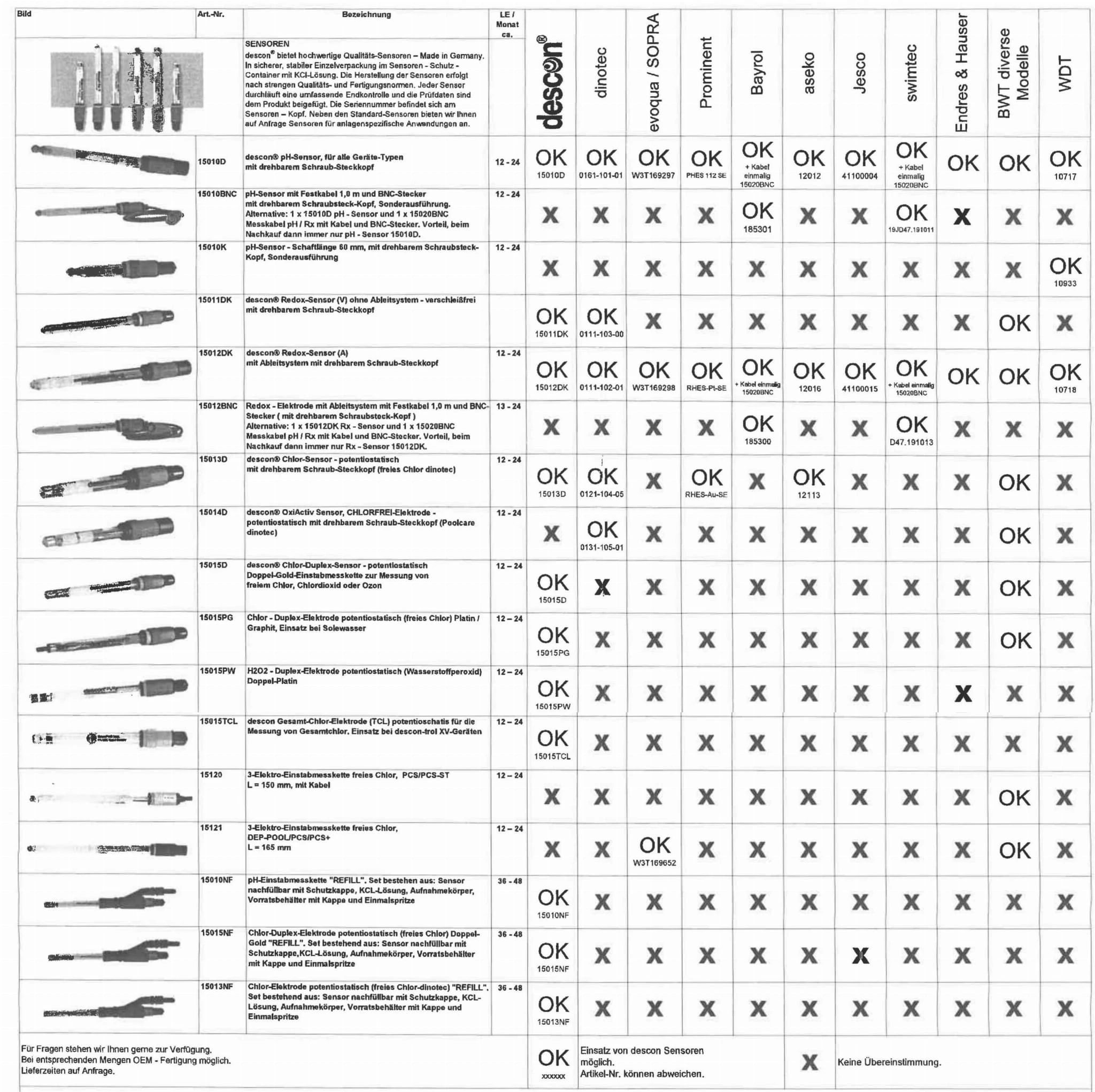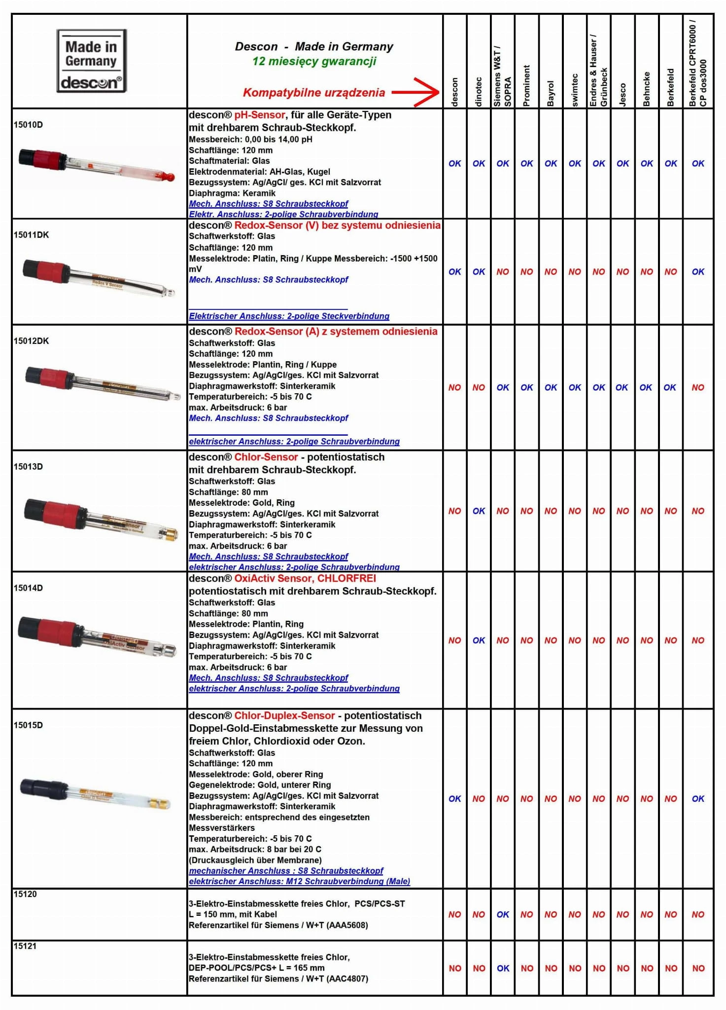 Sonda NIE pasuje do urządzeń: Dinotec, Siemens W&T/SOPRA, Prominent, Bayrol, Swimtec, Endres & Hauser/Grünbeck, Jesco, Behncke.