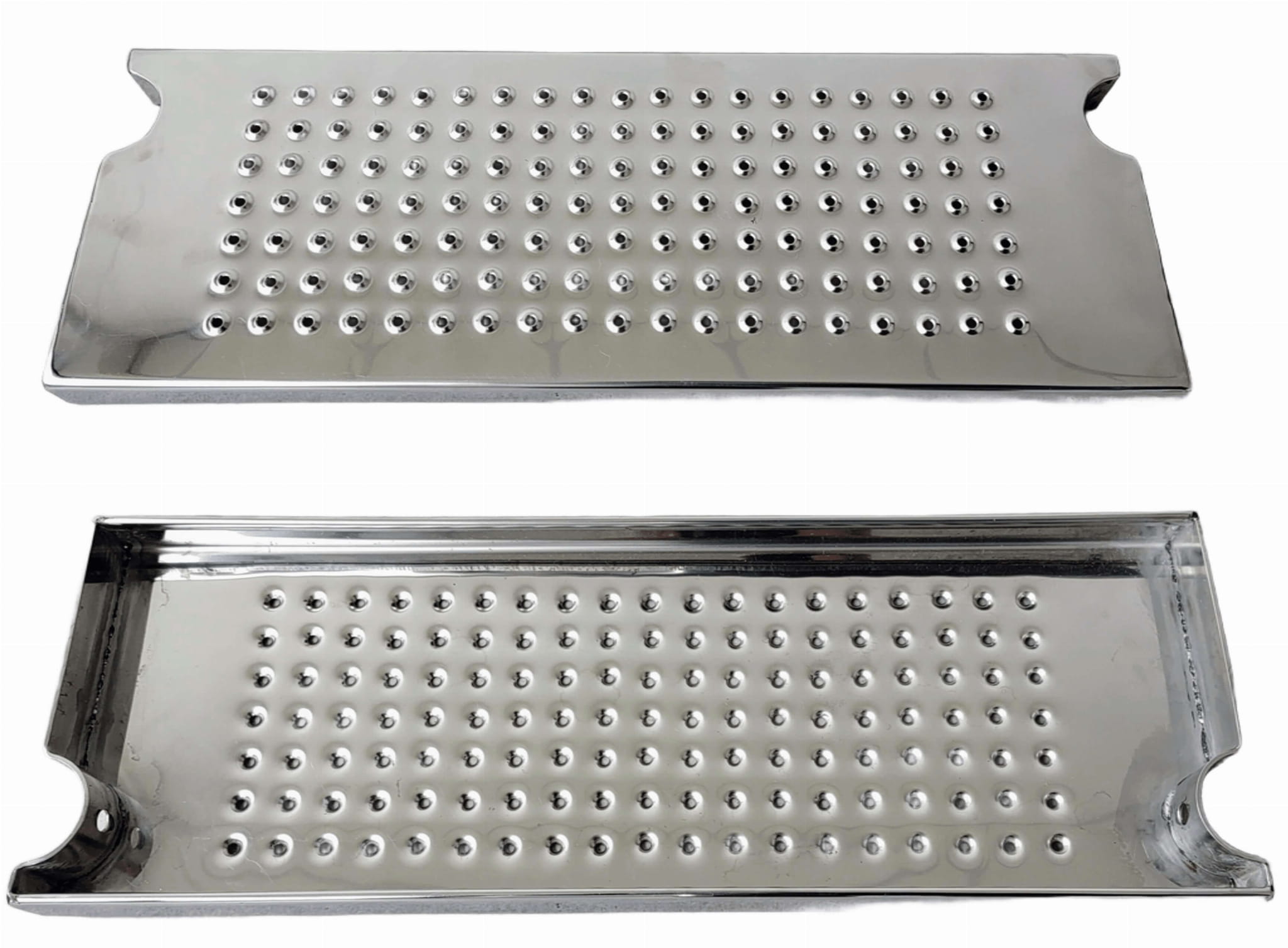 Stopień do drabinki basenowej antypoślizgowy. Uniwersalne rozmiary pod standardowe poręcze fi43mm. Wykonanie 100% polerowana stal nierdzewna AISI304, polska produkcja - bardzo wysoka jakość.