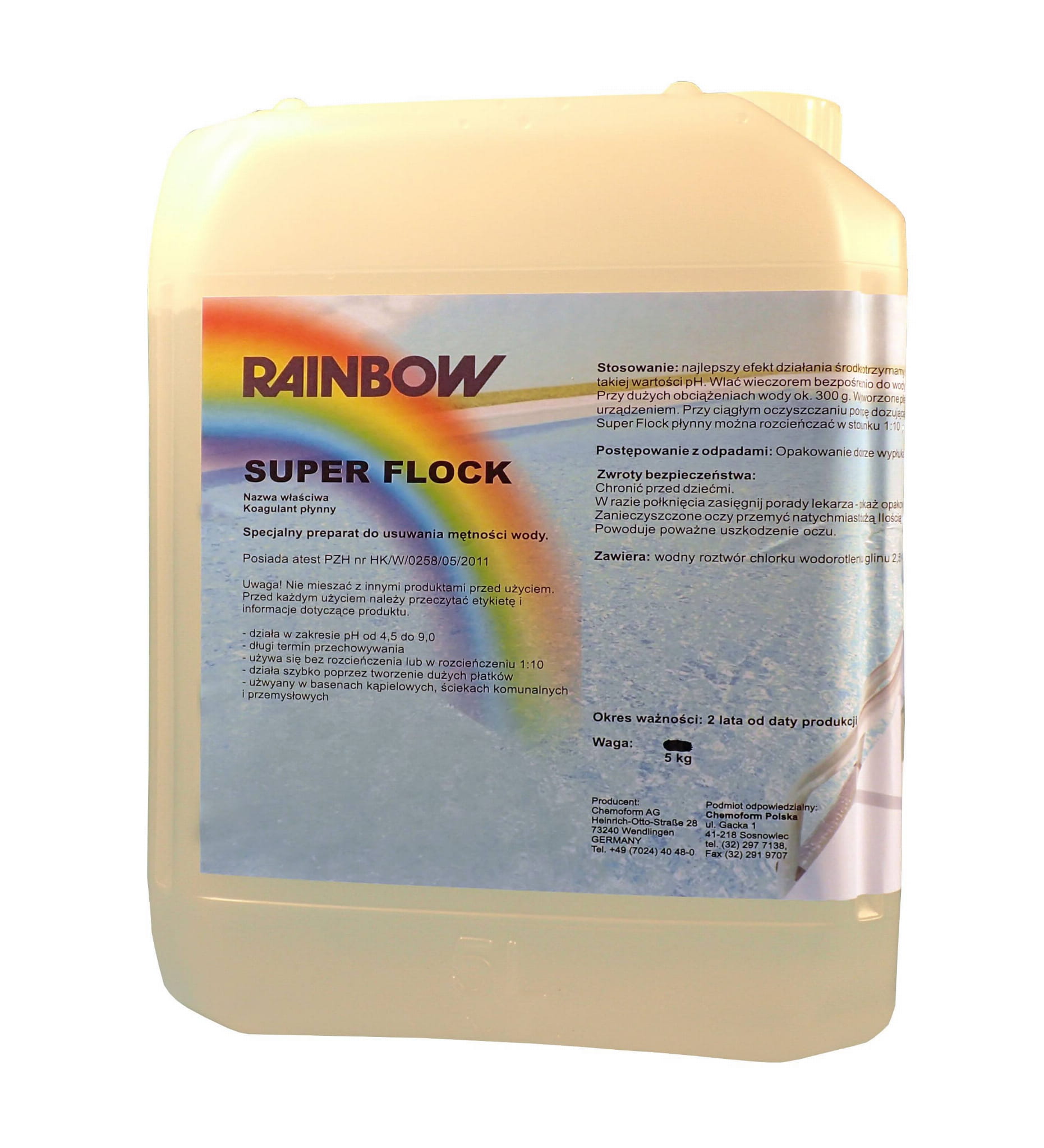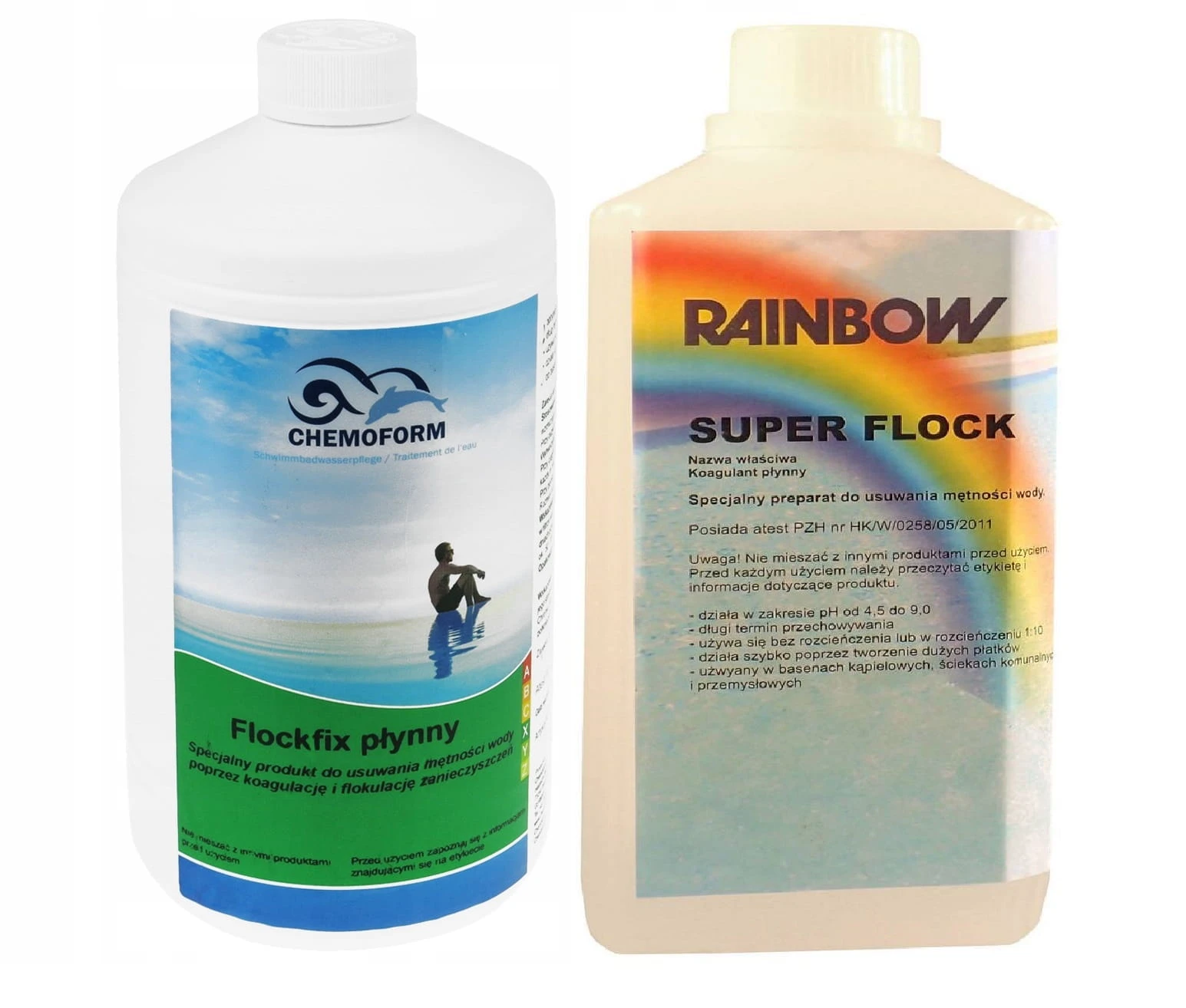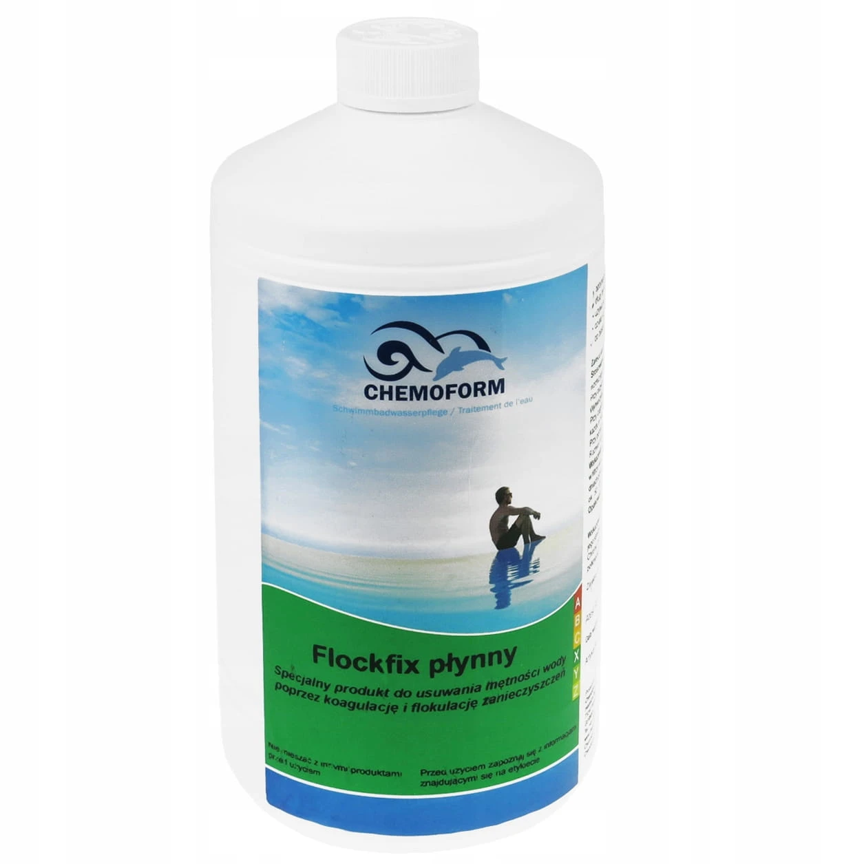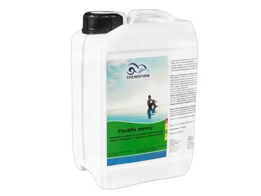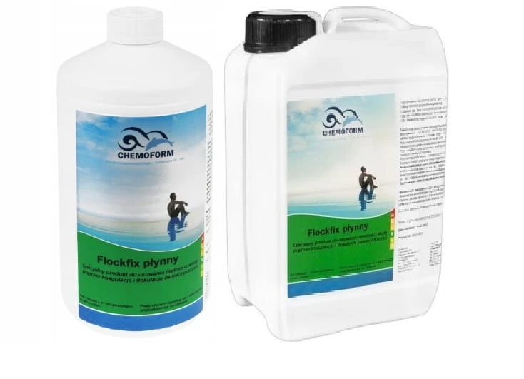 Flockfix (Super Flock) - specjalny koagulant do usuwania mętności wody basenowej i uzyskiwania efektu krystalicznej przeźroczystości, producent: Chemoform Niemcy (wszystkie pojemności 1L, 3L i 5L).