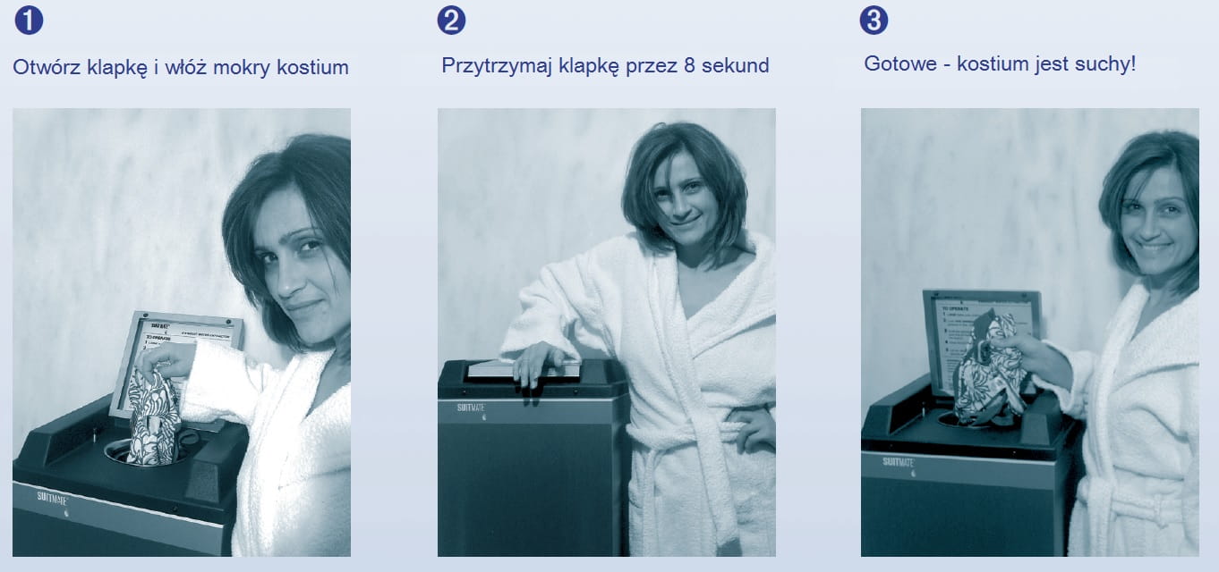 Profesjonalna suszarka basenowa susząca strój kąpielowy w 8 sekund - idealna dla nowoczesnych basenów publicznych, hoteli i spa.
