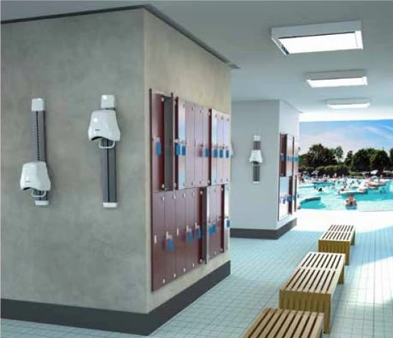 Dzięki możliwości zamontowania urządzenia do prowadnicy H-C1M, suszarka do włosów może być optymalnie dopasowana do każdej wysokości ciała. Jest to optymalne rozwiązanie dla dzieci, osób starszych i niepełnosprawnych, do suszenia włosów w obiektach sportowych, na basenie, w przestrzeni publicznej lub centrum fitness. Szybkie i przyjemne suszenie włosów