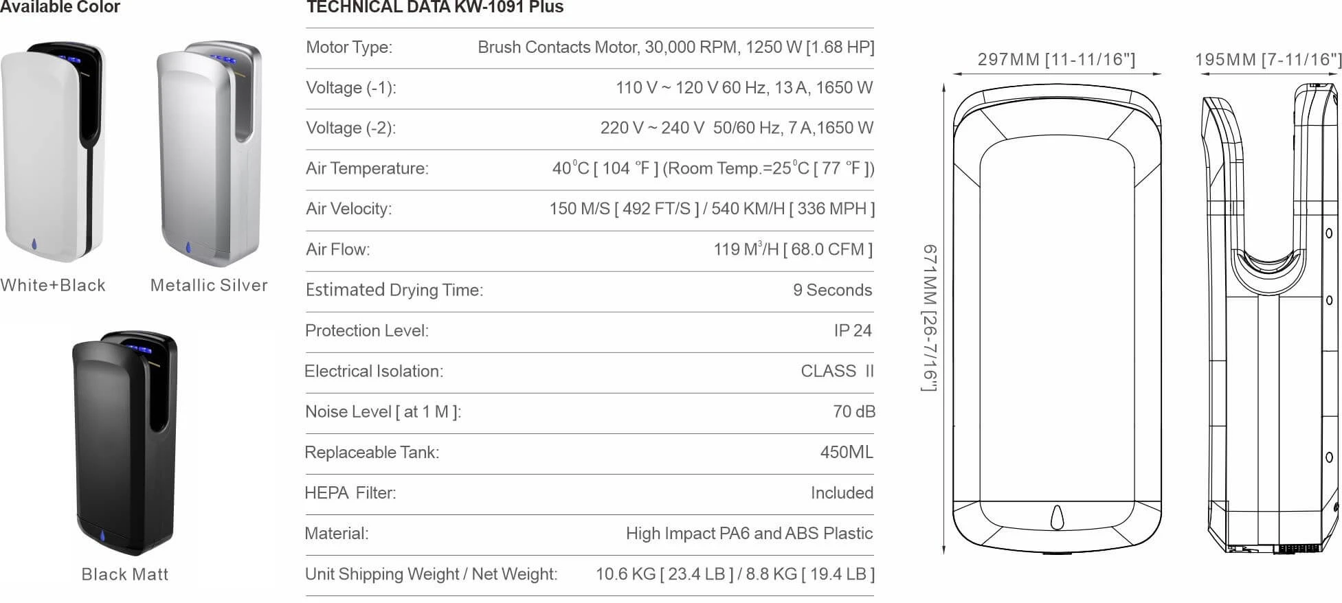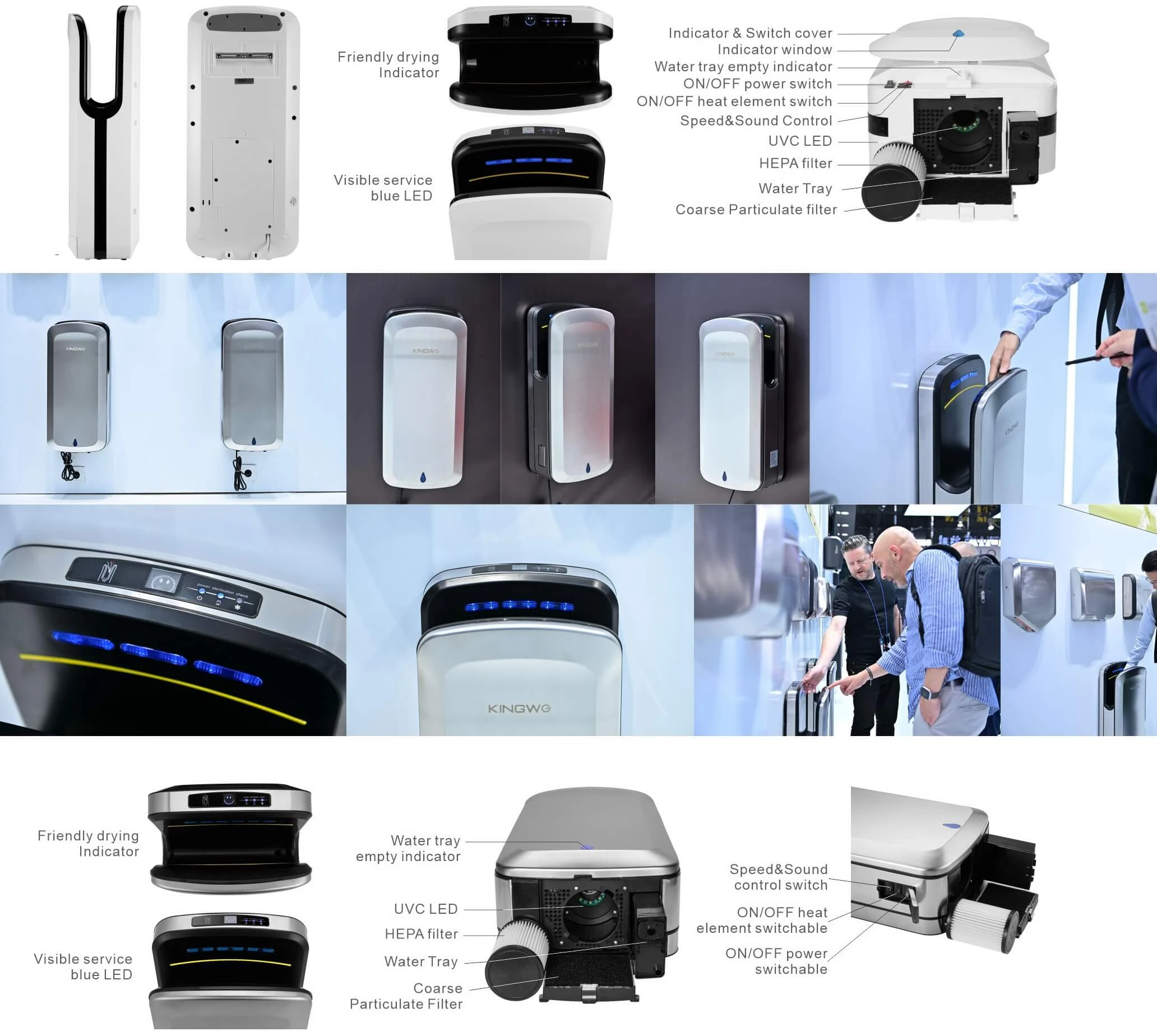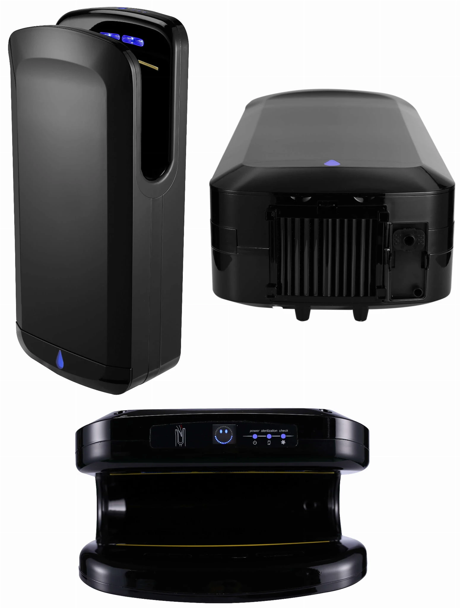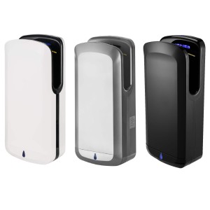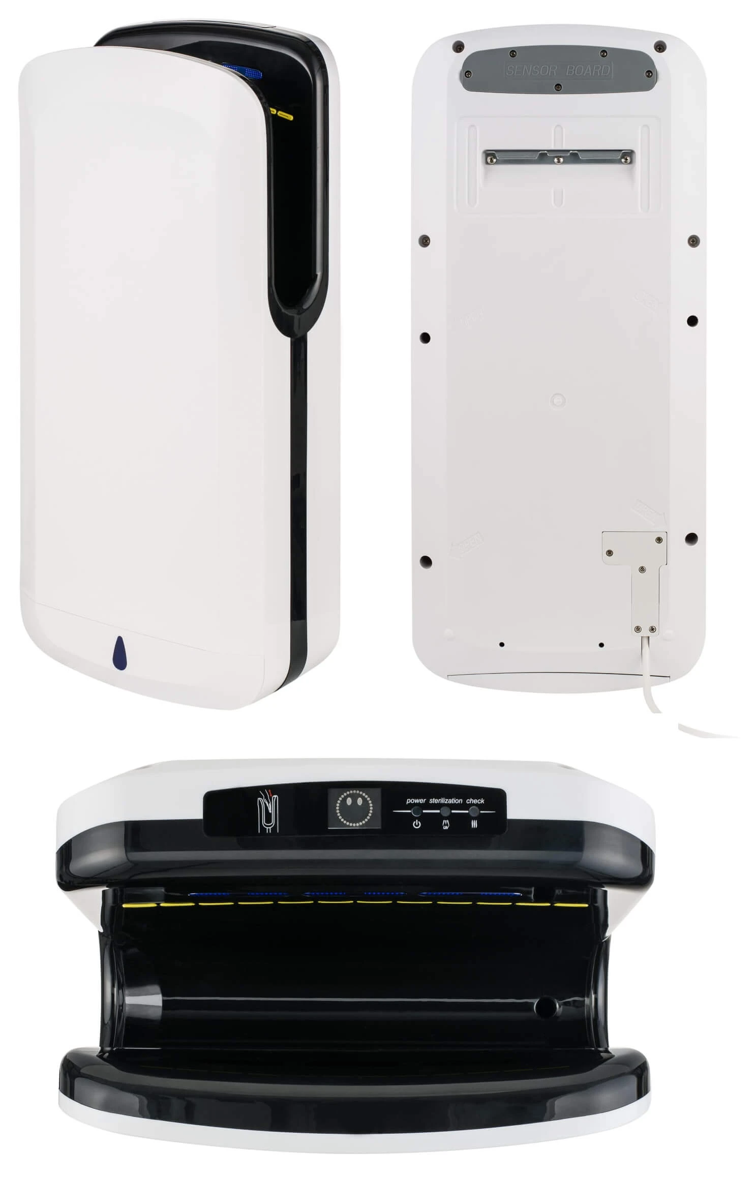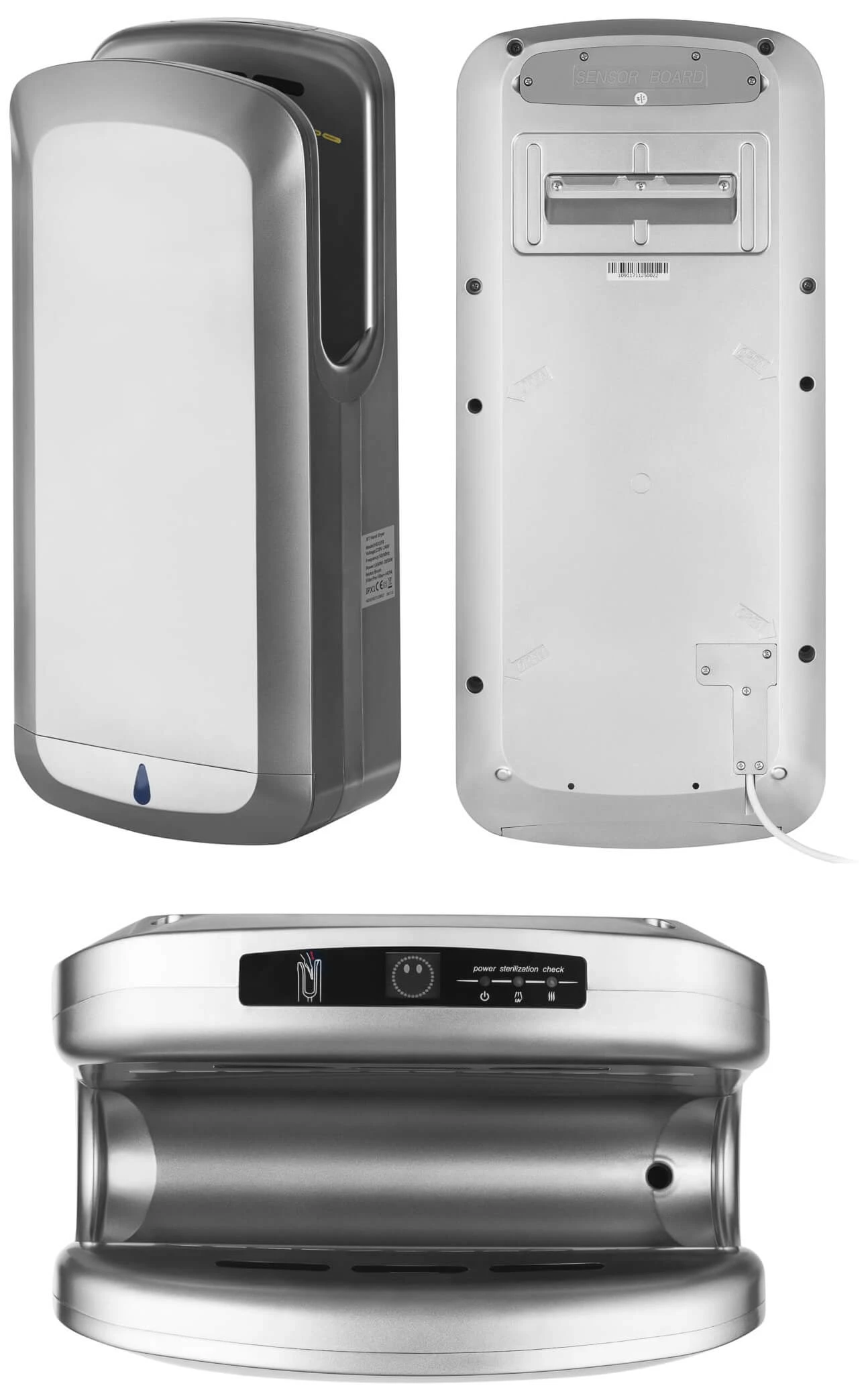 Suszarka kieszeniowa do rąk dla basenów, spa i hoteli Jet, budowa z solidnego tworzywa ABS w kolorze białym, srebrnym lub czarnym. Ma wszystko co potrzeba, nowoczesną konstrukcję ze sterylizacją UV A/B i wygodne użytkowanie.