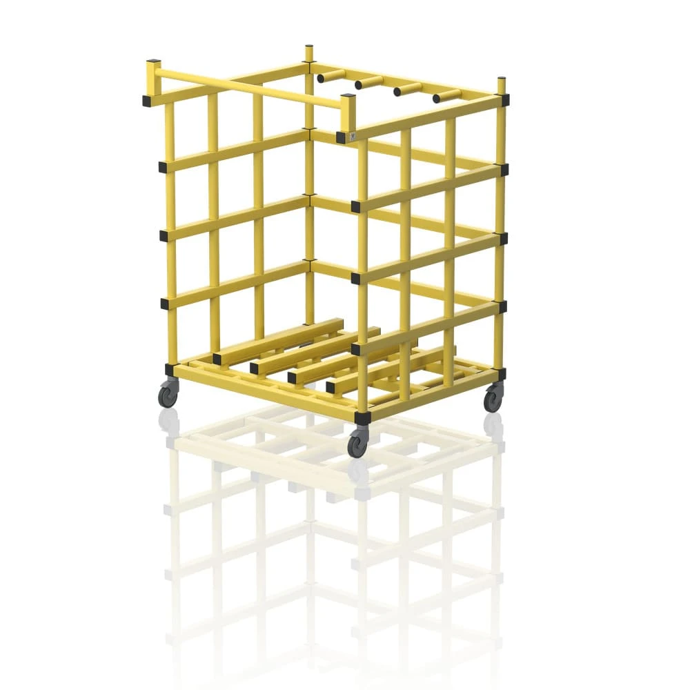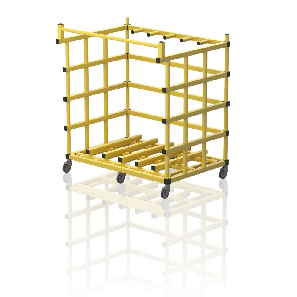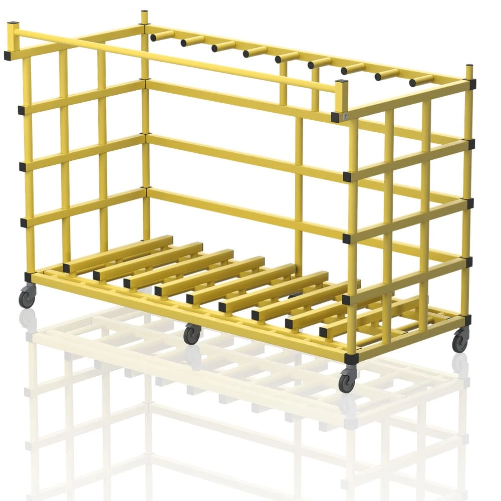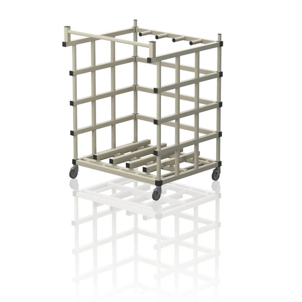 Wózek z wyjmowaną barierką do transportu i przechowywania dziesięciu mat aqua fitness (szerokość 900 mm, grubość 150 lub 200 mm). Wykonany z wytrzymałego, wodoodpornego PVC, idealnego do środowisk o wysokiej wilgotności. Hamowane kółka zapewniają bezpieczną i kontrolowaną mobilność. Dostępny w sześciu kolorach.