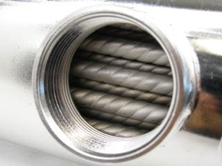 Wymiennik ciepła do basenu płaszczowo-rurowy to tani sposób ogrzania wody w basenie, o ile tylko istnieje możliwość jego zastosowania, stal nierdzewna 316L. Łączy obieg ciepłej wody z kotła, z obiegiem wody w basenie, i zapewnia efektywną wymianę ciepła między obiegami. Współczesne piece, posiadające możliwość konfiguracji i automatyzacji, pozwalają wygodnie korzystać z ciepłej wody w basenie niemal przez cały rok, przy minimalnych kosztach. w porównaniu do grzałek elektrycznych lub pomp ciepła.