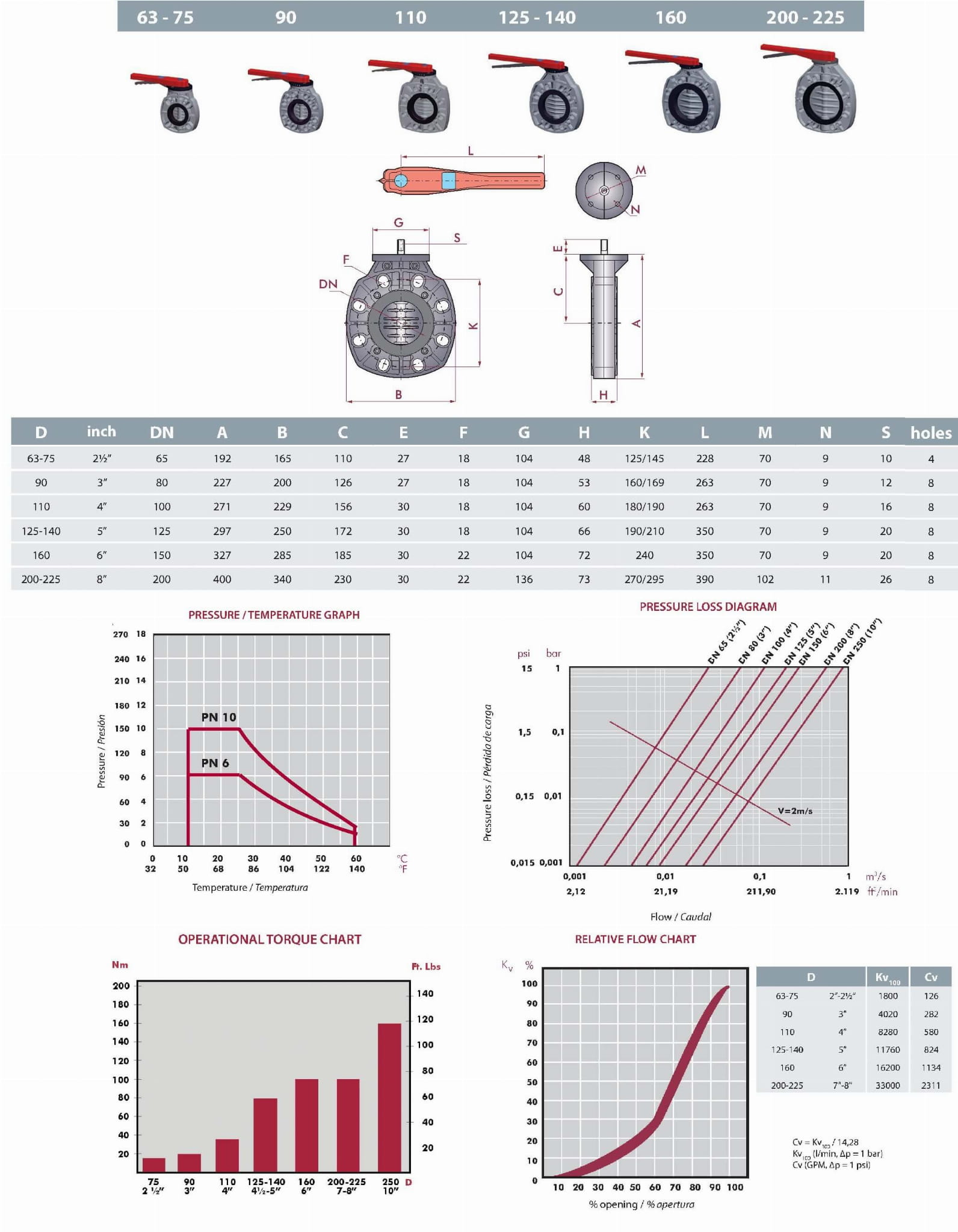 D63-D140 (2" - 5"): PN 10 (150 psi)