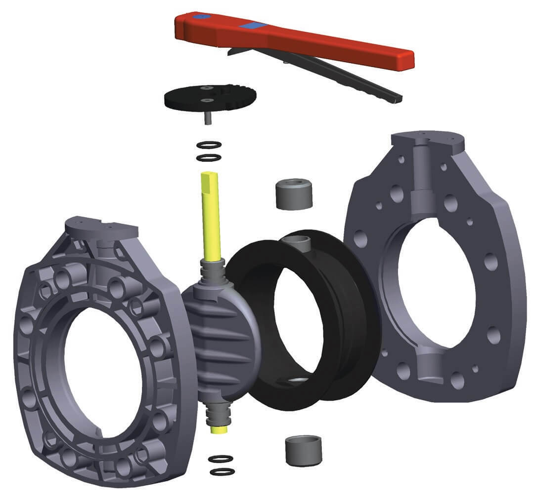 Zawory klapowe, nazywane często przepustnicami lub zaworami motylkowymi, swoją nazwę zawdzięczają wewnętrznemu dyskowi, która ogranicza lub całkowicie zamyka przepływ. Zawory klapowe pracują w trybie zamknij/otwórz jak również mogą być stosowane jako proste zawory do regulacji przepływu. Standardowo sterowane są za pomocą dźwigni ręcznej lub przekładni ślimakowej, mogą też być wyposażone w napędy pneumatyczne i elektryczne 24-230V. Najczęściej stosowane są w instalacjach wodociągowych i przemysłowych. Zawory motylkowe służą do regulacji i odcinania przepływu medium w instalacjach hydraulicznych. Gama zaworów międzykołnierzowych pozwala na zabudowę wielu systemach co czyni je bardzo uniwersalnymi. Zawory są wykonane z PVC-U lub PP wzmacnianego włóknem szklanym przez co mają wszechstronne zastosowanie. Standardowo są wyposażone w dźwignię ręczną, mogą być wyposażone w przekładnię.