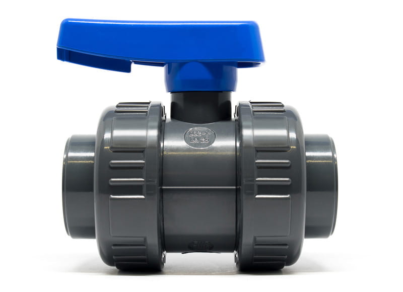 Zawór kulowy pvc do obustronnych połączeń klejonych w basenach, instalacjach ciśnieniowych i z wysoką temperaturą. Ciśnienie PN16, uszczelnienie gniazda PTFE, maksymalna temperatura jaką wytrzyma zawór to 60 stopni. Posiadamy również zawory kulowe pvc w wersjach zwrotnych, zawór z dźwignią regulacyjną Effast oraz Antiblock. Zawór zalecamy dokręcać bez używania narzędzi.