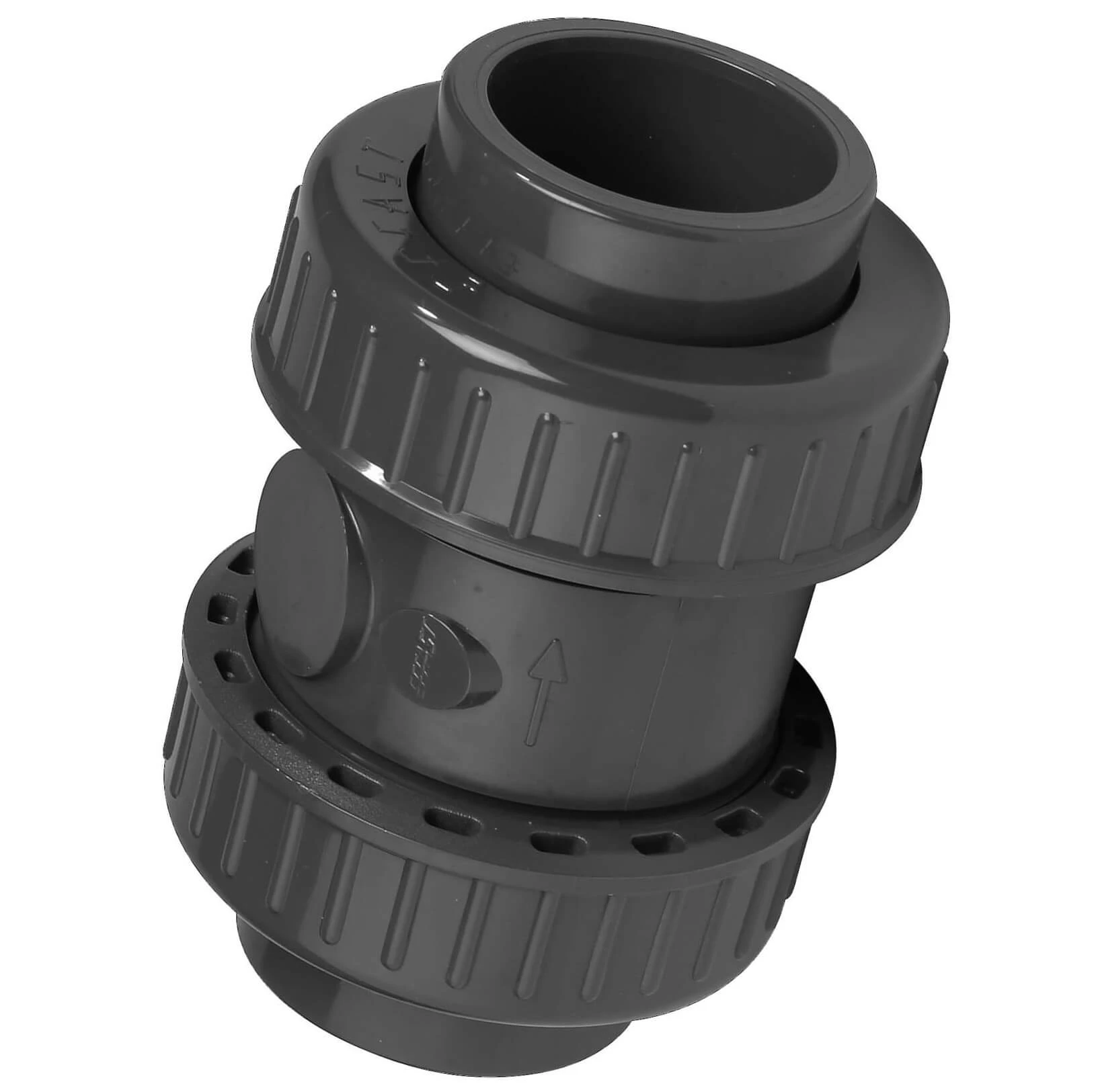 Zawór zwrotny pionowego przepływu BEZ SPRĘŻYNY PVC KW/KW, kształtka ciśnieniowa do instalacji basenowych, bardzo dobra jakość - Cepex. Możliwość instalacji TYLKO w pionie.