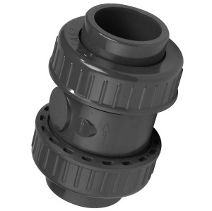 Zawór zwrotny pvc do połączeń klejonych w basenach, instalacjach ciśnieniowych i z wysoką temperaturą. Ciśnienie PN16, uszczelnienie gniazda EPDM, maksymalna temperatura 60 stopni. Posiadamy również zawory kulowe pvc z dźwignią regulacyjną. Zalecamy dokręcanie bez używania narzędzi.