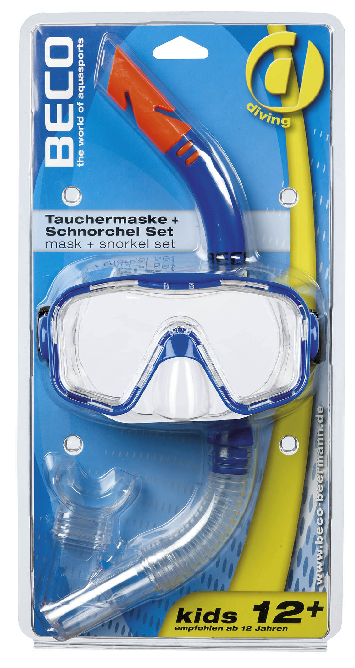 Wysokiej jakości zestaw do nurkowania dla dzieci powyżej 12 roku życia marki BECO, seria Bahia. Kolory zestawów losowe: czerwone, żółte lub niebieskie.